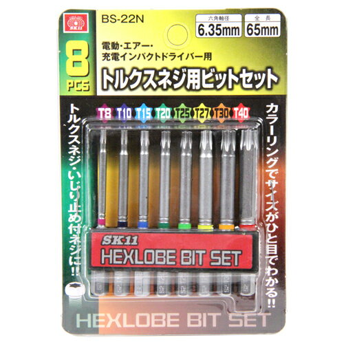 【メール便 可】【6個まで/1梱包】 藤原産業 SK11 トルクスネジ用 ビットセット BS-22N 8本組