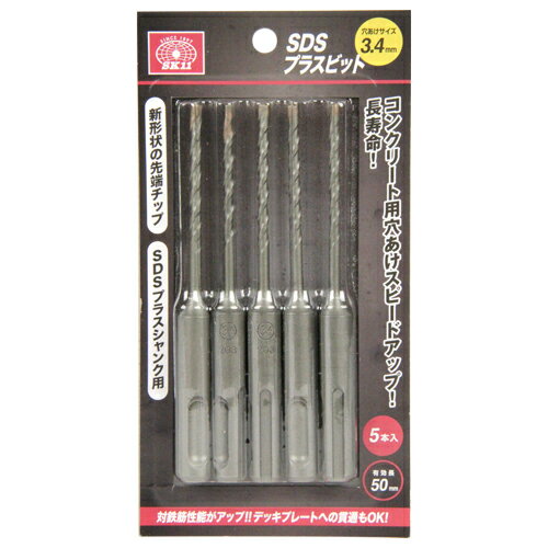 【メール便 可】 藤原産業 SK11 SDSプラスビット 5本組 3.4MM