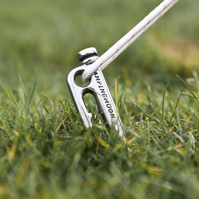 関連商品はこちら 品名麻留田ステイク 26型番K26-8P内容26cm 8本セットサイズ260mm(打込み部/φ8-9mm楕円)重量131g/pc (8本計1.05kg)材質マルテンサイト系ステンレス鋼420J ステンレス鋼・耐熱鋼の中でも最高の硬さを誇るSUS420を採用工法焼き入れ1000℃、焼き戻し700℃ 強熱での「鍛造」工程を経てより強度を高めました硬度366HB以上 (ステンレスSUS304の硬度の倍以上)特徴・タービンブレードに使われるほど強固なステンレス鋼を採用した渋い銀色の鍛造ペグ。 ・温度と時間を最適化をした熱処理から生まれた、硬度が366HB以上の頑丈さが特徴。 ・丸々一本を鍛造成形しており、溶接点がないため折れる心配もなく、長年使える。 ・無垢のステンレス棒で表面に塗装などは施していないため、ハンマーで叩いて塗装が剥げて錆が発生する心配がない。注意事項※ステンレスは絶対に錆びないわけではありません。錆びにくい性質です。 ※土壌に含まれる塩素分により不動態皮膜が破壊される可能性がございますので、汚れを綺麗に落としてから保管してください。 ※表面にサビが付着された場合、メラミンスポンジでサビを落として保管してください。 ※細部のデザインは製造ロットにより予告なしに若干変更になる場合がございます。 ※輸入品、アウトドア仕様に付きスレ、キズ等がある場合がございます。 ※良いものをより安く提供できるよう、プチプチにてエコ梱包とさせていただいております。ブランドCAMPINGMOON キャンピングムーン関連ワードソロキャンプ アウトドア キャンプ アウトドア用品 キャンプ用品 焚き火 焚火 焚き火台 焚火台 網 グリル 交換 五徳 ゴトク ロストル グリル フレーム ステンレス オールステンレス ソログリル バーベキュー BBQ 炭火 薪 炭 調理 直火 キッチン クッキング 軽量 コンパクト コンパクト収納 収納 帆布製 収納バック 収納ケース 専用ケース 専用バック 持ち運び 簡単 レジャー 登山 釣り グランピング 車中泊 お得 おすすめ 人気26cm 8本セット・温度と時間を最適化をした熱処理から生まれた硬度は、366HB以上の頑丈さ!半永久的に使えます ・溶接や塗装が施されていない艶やかな表面も魅力!※こちらのページは26cm×8本の販売となります使用方法ペグで自作ギアにチャレンジ!(1)シェラスタンド ブログでも多く見かけるペグのアレンジ法。ペグだけの組み合わせでもできちゃいます。 (2)薪ラックとして 焚火をする際、地面が湿っていたり濡れていたりすると薪が濡れて燃えにくくなります。 また、翌日に薪を持ち越す時も地面に置いておくことで朝露によって湿気てしまうことも…。そんなとき薪ラックの出番!持っていない方や忘れてしまってもペグで代用が可能です。 (3)焚火調理の際のゴトクとして 鍛造ペグであるゆえ、熱に強いことから焚火調理などをするさいのゴトクにも使用可能。熱量が非常に大きいとされる焚火の温度は250℃〜450℃と言われていますが、鍛造ペグK-Pegで使われているマルテンサイトステンレスは、500℃あってもさほど変形しません。 (4)簡易テーブルとして ペグの形を活かして簡易テーブルにする方法もあります。4本地面に打ち込んでから天板を配置、またはゴトクMTG-Aを丸穴に差し込んでも◎焚火のそばでケトルやマグなどを置けるサイドテーブルとして。もちろんそのまま焚き火グリルとしても使えます。 他もいろいろ・・・ 蚊取り線香ホルダーやポールとセットでランタンスタンドなど、水に強いステンレス製のため、アイデア次第で幅広い用途に使えてサステナブル!