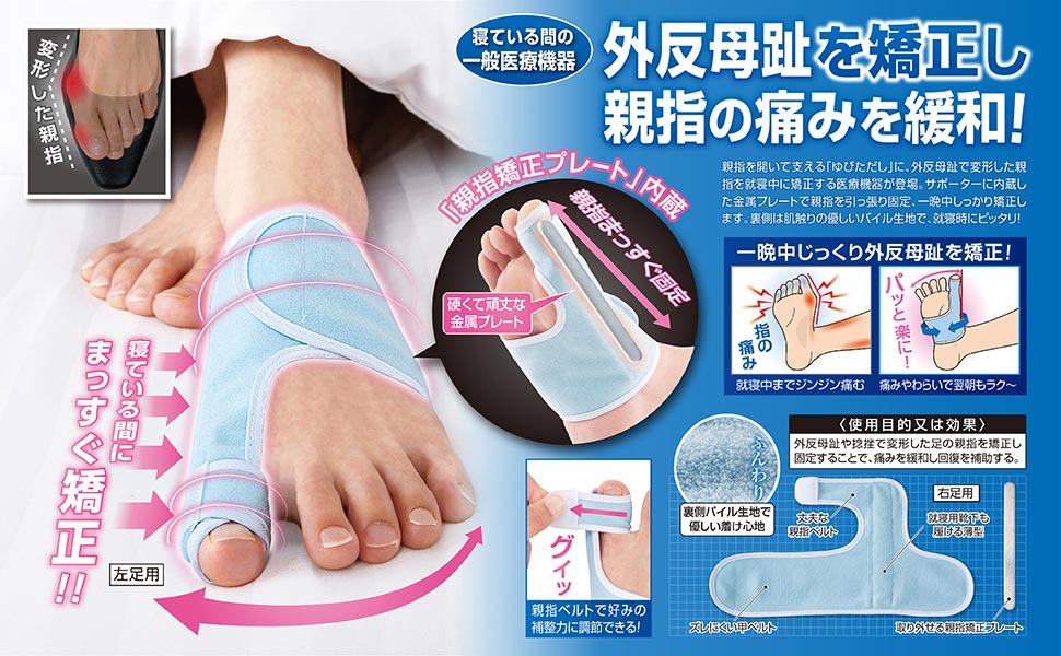 外反母趾サポーター [ 夜用メディカルゆびただし ] 一般医療機器 外反母趾 矯正 サポーター 対策 右足 左足 両足 就寝中 着用 親指 変形 固定 外反母趾矯正 矯正サポーター 左右 寝ている間 ケア 外側 引っ張る 日本製