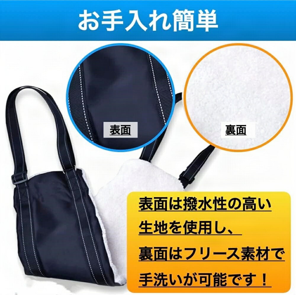 【足腰が弱った犬におすすめです】体力の低下や足腰が弱ってきた老犬の介護用、歩行補助ハーネスにお使いいただけます。使用しない時は収納ケースに入れて保管したり、持ち歩くことも可能です。素材は胴体に負担がかかりにくく、通気性の良い起毛フリース素材を使用しています。胴体にかかる負担が和らぎ、安心して犬の散歩や歩行補助が可能です。 【お手入れ簡単】表面は撥水素材でできており、汚れや水濡れしにくい素材です。また、手洗い可能で簡単にお手入れできます。■お手入れ方法■ 水で薄めた家庭用洗剤で手洗いしてください。 【持ちやすいグリップ】グリップカバーをつけることで持ち手にかかる負担を軽減できます。犬のサイズに合わせてベルト長を調整できます。