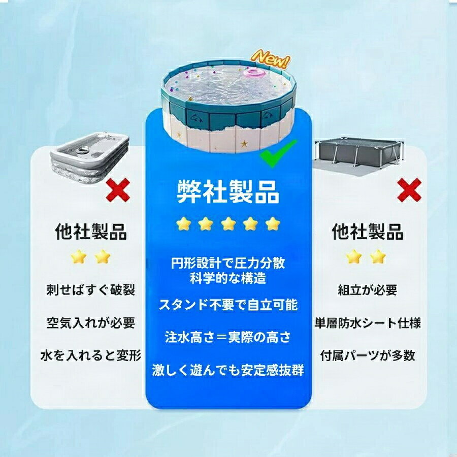 商品説明 商品仕様 商品名:空気入れ不要 折りたたみプール 材質:サンドイッチメッシュPVC 耐熱温度:70℃ 対象年齢:6ヶ月以上 サイズ展開: 90×45cm:1〜2人用 120×45cm:1〜4人用 160×45cm:1〜5人用 🌞【楽しく遊べる特別な空間】中にボールを入れてボールプールとして遊んだり、おもちゃで遊ぶ時のプレイサークルとしても!お子さまだけの特別な空間になります♪夏にはお水を入れてプールとしてもお使いいただけます! 🌞【広げるだけで使える】組み立ても面倒な空気入れも必要がなく、丈夫なPVC素材を使用しているので穴が開いてしぼんでしまうこともありません!使いたい時にサッと広げて、収納時は折りたたむだけ。屋内でも屋外でも使いやすい90cm/120cm/160cmサイズをご用意しております。 🌞【便利な排水口付き】水を入れて使った後も片付けは簡単。排水口が側面についているので、素早く排水が完了します。排水が終わったら折りたたむだけなので、面倒な片付けも簡単にできます。 🌞【使用シーン】家庭用プール、子供用プール、ペット用バスタブ、水遊び用、ボールプール、おもちゃを入れてキッズスペースなど様々な用途にお使いいただけます。屋外だけではなく屋内でも!使いたい時にすぐ広げられるのが魅力です。 在庫・発送について 発送について ●土日・祝日は休業日とさせて頂いております。 ●弊店は発送時間の指定を承っておりませんので、ご了承ください。 在庫について ●商品によっては、弊社運営の多店舗と在庫を共有しているものがございます。 ●ご注文頂くタイミングによっては、ホームページ上で在庫がある商品も欠品になる場合がございます。 ●入荷待ち/突然に在庫切れの商品に関しましては、別途メールにてご連絡差し上げます。 ●ご了承の上ご注文下さいます様お願い申し上げます。 ご注意 ●サイズ詳細等の測り方はスタッフ間で統一、徹底はしておりますが、実寸は商品によって若干の誤差(1cm〜3cm )がある場合がございますので、予めご了承ください。 ●製造ロットにより、細部形状の違いや、同色でも色味に多少の誤差が生じます。 ●パッケージは改良のため予告なく仕様を変更する場合があります。 ▼商品の色は、撮影時の光や、お客様のモニターの色具合などにより、実際の商品と異なる場合がございます。あらかじめ、ご了承ください。 ▼生地の特性上、やや匂いが強く感じられるものもございます。数日のご使用や陰干しなどで気になる匂いはほとんど感じられなくなります。 ▼同じ商品でも生産時期により形やサイズ、カラーに多少の誤差が生じる場合もございます。 関連キーワード 【10秒で組み立て】たみ 空気入れ不要 円形 子供 赤ちゃんキッズ 水遊び ボープール ビニールプール 折り畳み おしゃれ 子供用プール コンパクト キッズサークル 庭遊び ベランダ 自宅 室内 室内遊具 遊び場 屋内 屋外 保育園 幼稚園 家庭用 家用 お家プール