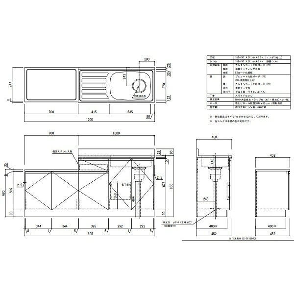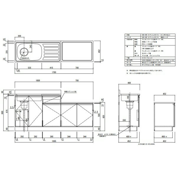 【商品詳細】アイオ産業 LW+シリーズ ガス台付流し台 LW-1700SG 【サイズ】W1700XD460XH800+90/620mm 【内容】扉:プレコート 木口:木口テープ巻き 取手:アルミ製ラインハンドル 仕様:大型排水トラップ・EBコート底板・シンク左右あり ※ガス台W=700 【カラー】カラー4色(鏡面扉仕様 SW:スノーホワイト/マット調扉 D:ダークウッド M:ミディアムウッド A:アッシュホワイト) ※SW以外は受注生産品です。 【発送情報】メーカー直送品です。 こちらの商品は(アイオ産業)からお送りいたします。 受注生産品の場合は2週間以上かかる場合がございます。 受注生産品の場合は最短納期をメールにてご連絡いたしますので、指定がある方はメールもしくはお問い合わせよりご連絡お願いいたします。 【送料表サイズ】E 【配送エリア】 東京エリア・埼玉エリア・神奈川エリア・千葉エリアの一部 【ご注意】配送エリア外をご希望の場合は、お問い合せください。 【配送地域外の目安運賃】※1台あたりの目安の運賃です。 ・関東近郊:¥8,000〜¥20,000 ・東北:¥10,000〜¥35,000 ・中部関西:¥10,000〜¥30,000 ・中国四国九州:¥13,000〜¥40,000 商品の大きさによって前後致します。 ※沖縄を含む離島への配送は行っておりません。