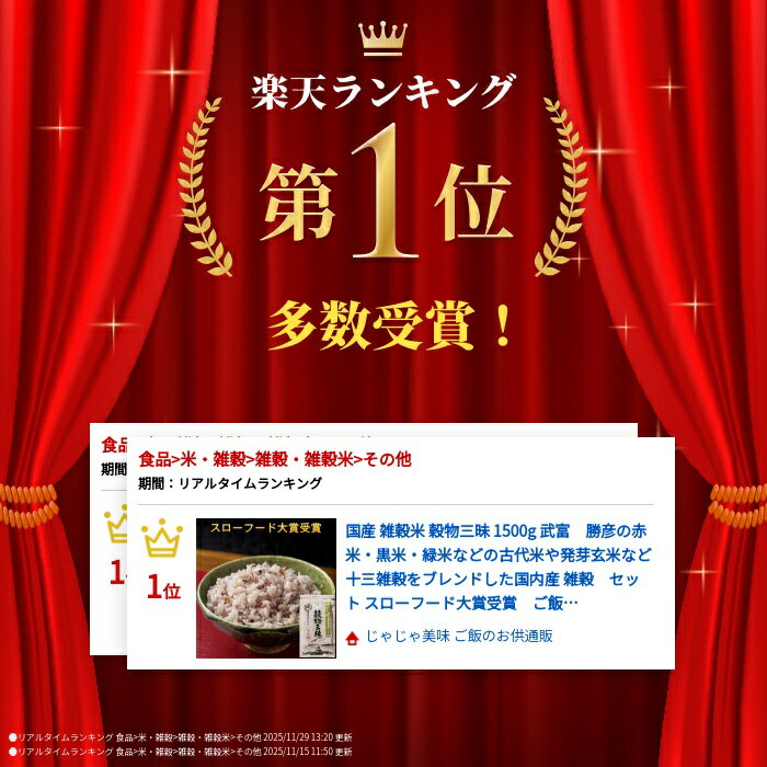国産 雑穀米 穀物三昧 1500g 武富 勝彦の赤米・黒米・緑米などの古代米や発芽玄米など十三雑穀をブレンドした国内産 雑穀 セット スローフード大賞受賞 ご飯のお供