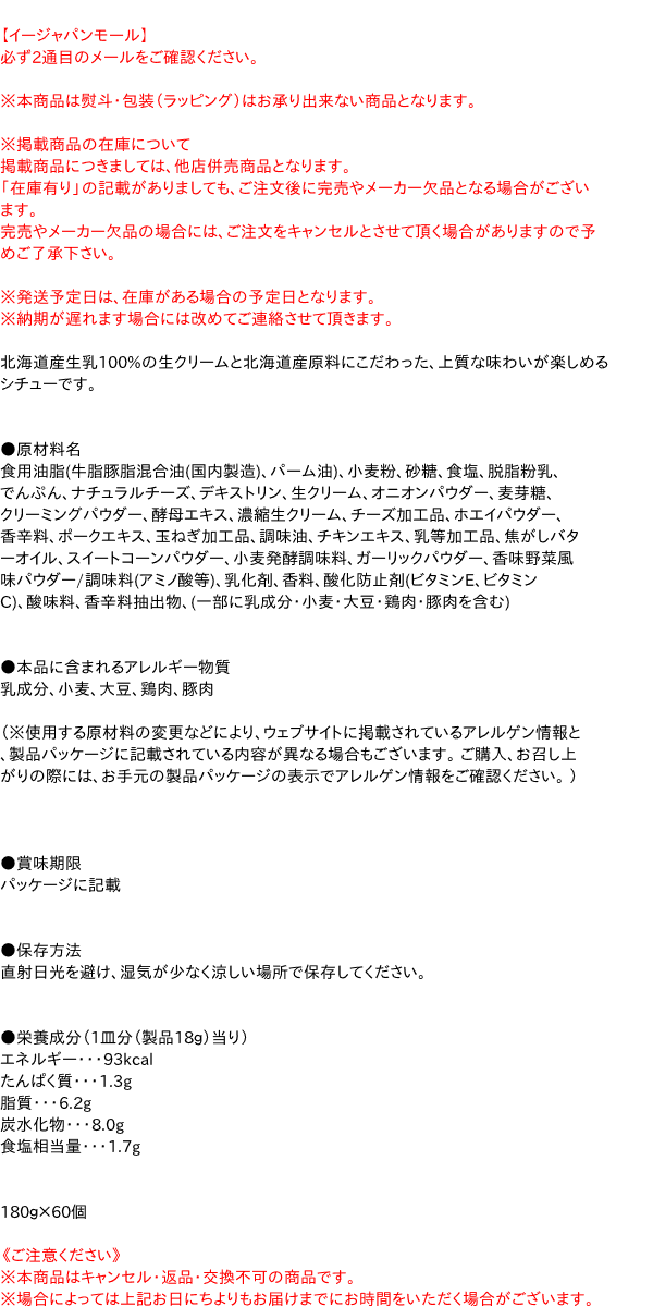 ★まとめ買い★ ハウス食品 北海道シチュークリーム 180G ×60個【イージャパンモール】