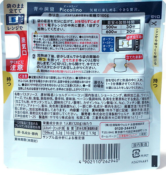 ★まとめ買い★ 日清製粉ウェルナ 青の洞窟ピッコリーのスモークチーズのカルボナーラ 120g ×10個【イージャパンモール】