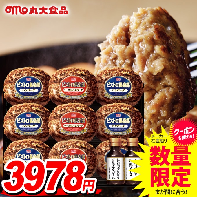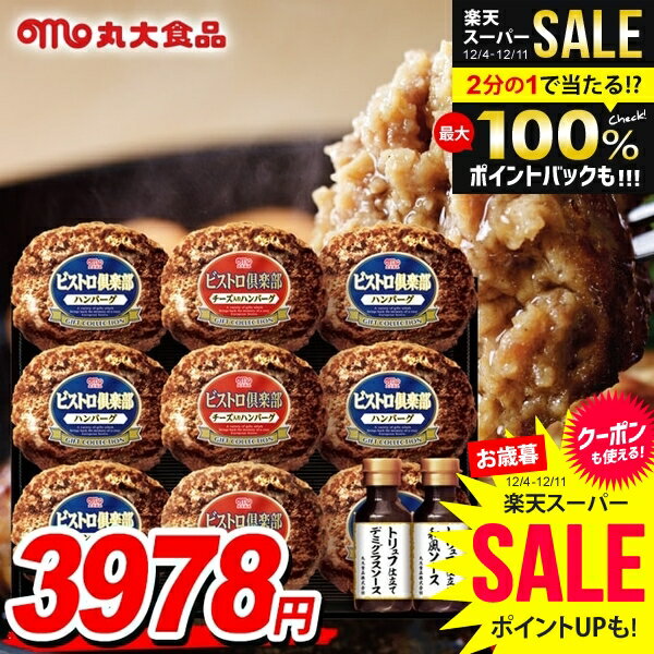 ※他の一般商品とは同梱(まとめて発送)出来ません。一般常温商品とハム等クール便使用商品とは別々にご注文下さい。●商品名/丸大食品 ハンバーグ MHB-30●商品内容/鉄板焼ハンバーグ 115g×6、チーズ入りハンバーグ 115g×3、トリュフ仕立てデミグラスソース 90ml、トリュフ仕立て和風ソース 90ml●賞味期限/冷凍365日2025年、お歳暮・冬ギフト贈り物特集!お歳暮ギフト・御歳暮・冬グルメ・ハムギフト・ハム詰め合わせ・ウィンナー・食品・お取り寄せグルメは当店にお任せ下さい。ランキング入賞商品やおすすめ人気、定番のウインナーソーセージなどのセットも多数。会社、企業法人様の大量発注・まとめ買いにも対応。安心のメーカー直送、送料無料でお届け!ご自宅用・ご家庭用・おうち時間や、各種ご挨拶・お礼などにもおすすめ!※冬季お歳暮・冬ギフト早割・早期割引について・・・12月1日以降、現在の表示価格より5%アップとなります。(予定数量を超えた場合、早期終了となる場合がございます。) ジャパンギフトのオンラインショッピング(通信販売)では、用途を選ばない先様に喜ばれるこだわりのギフトを多数ご用意! お買い得商品もお見逃しなく。通販で手軽に確実なギフト選びを。企業様の大量注文にも丁寧にご対応させていただきます。 (お歳暮 2025 お歳暮ギフト 御歳暮 冬ギフト 冬グルメ ハムギフト お礼 御礼 お祝い 品物 お肉 ハム詰め合わせ ハム詰合せ ウィンナー ウインナー ソーセージ ローストビーフ グルメ 産地直送 送料無料 詰め合わせ 詰合せ ハムセット お歳暮ハム お歳暮ハム送料無料)