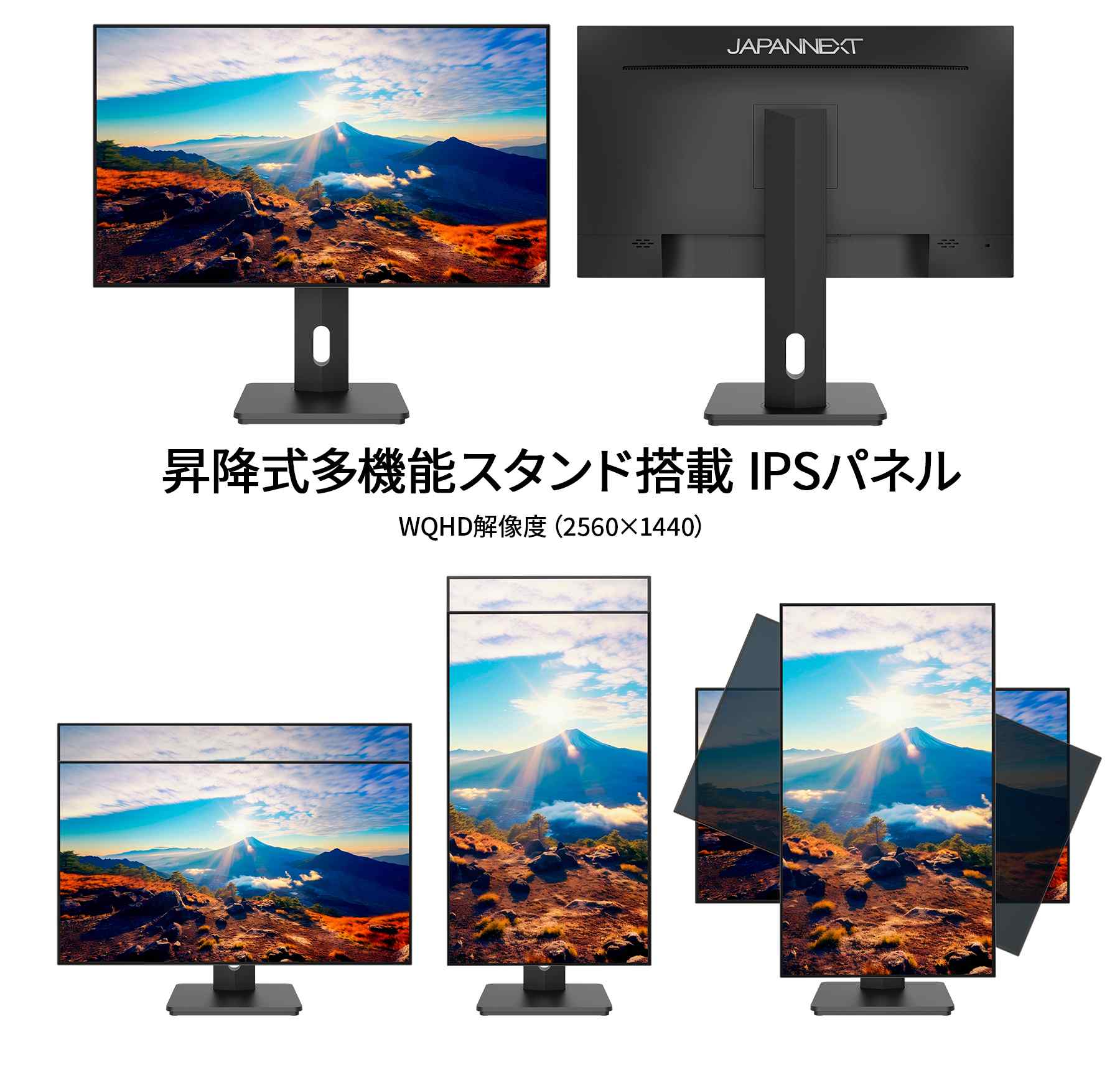 JAPANNEXT 27インチ IPSパネル搭載 WQHD(2560x1440)解像度液晶モニター JN-27IPS4FLWQHDR-HSP HDMI DP 4辺フレームレスモデル 高さ調整 ピボット機能搭載 液晶ディスプレイ PCモニター パソコンモニター PCモニター 液晶モニター パソコンモニター ジャパンネクスト