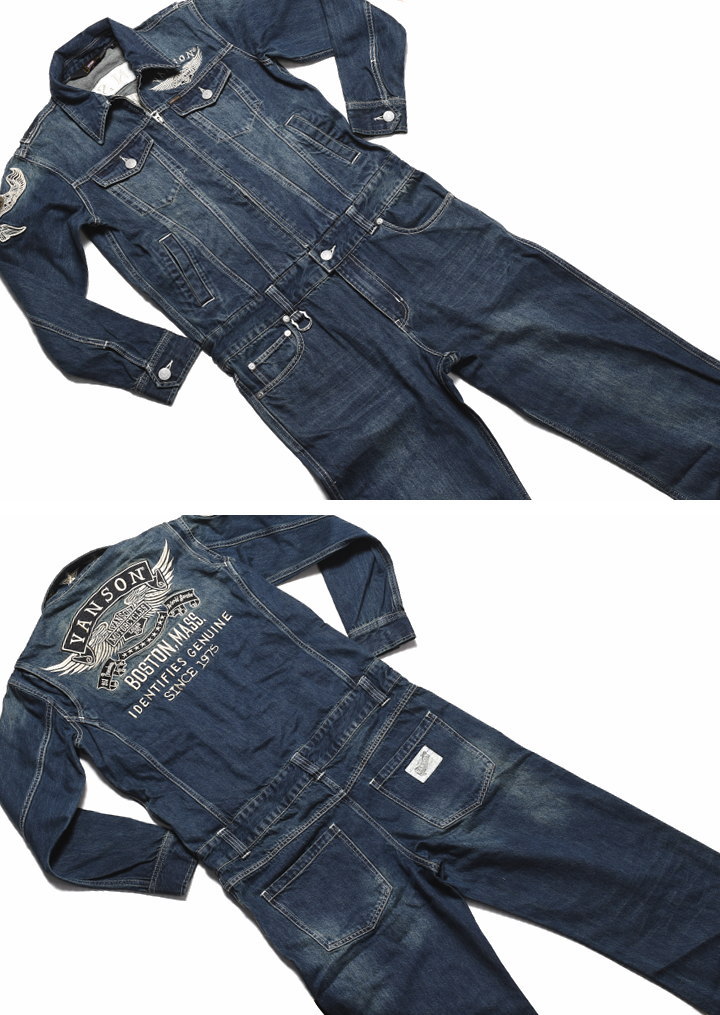 【当店別注】バンソン VANSON ツナギ つなぎ フライングエンブレム 総刺繍 デニム オールインワン JFV-601-INDIGO-A【再入荷】