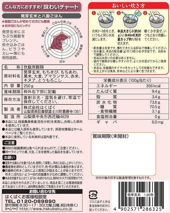 はくばく 発芽玄米と八穀ごはん 250g 玄米 お米 食材 食品