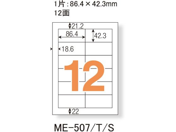 【商品説明】宛名向けの中ではサイズがやや大きめなので角封筒におすすめです。さまざまな内容表示用にも便利なサイズです。タイトル・インデックスに。大きめなショップのロゴやアドレスシールにも。台紙(裏紙、はく離紙)はリサイクルできるはく離紙を使用。【仕様】●面付:12面(2列×6段)●仕様:四辺余白●サイズ:A4(210×297mm)●ラベルサイズ:42.3×86.4mm●総厚:0.124mm●ラベル厚:0.071mm●白色度:80%●対応プリンタ:インクジェット(染料/顔料)、レーザー(カラー/モノクロ)、コピー(カラー/モノクロ)、熱転写●注文単位:1箱(500枚)●GPNエコ商品ねっと掲載【検索用キーワード】48872 46872 ME−507S PLUS OAラベル マルチプリンタラベル ラベルシール 【JP_LPC】 X28854さまざまなプリンターに対応!手書きもOK!