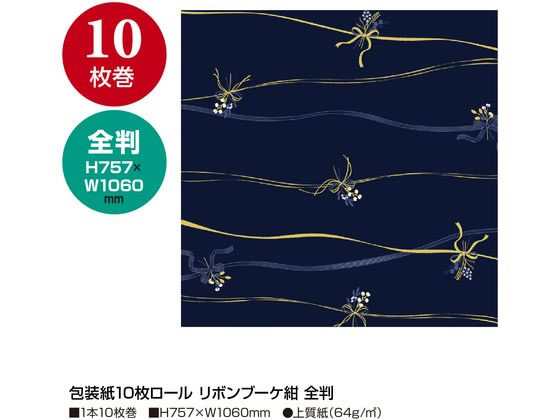 【お取り寄せ】ササガワ 包装紙10枚ロール リボンブーケ紺 全判 49-4679 包装紙 包装 ラッピング