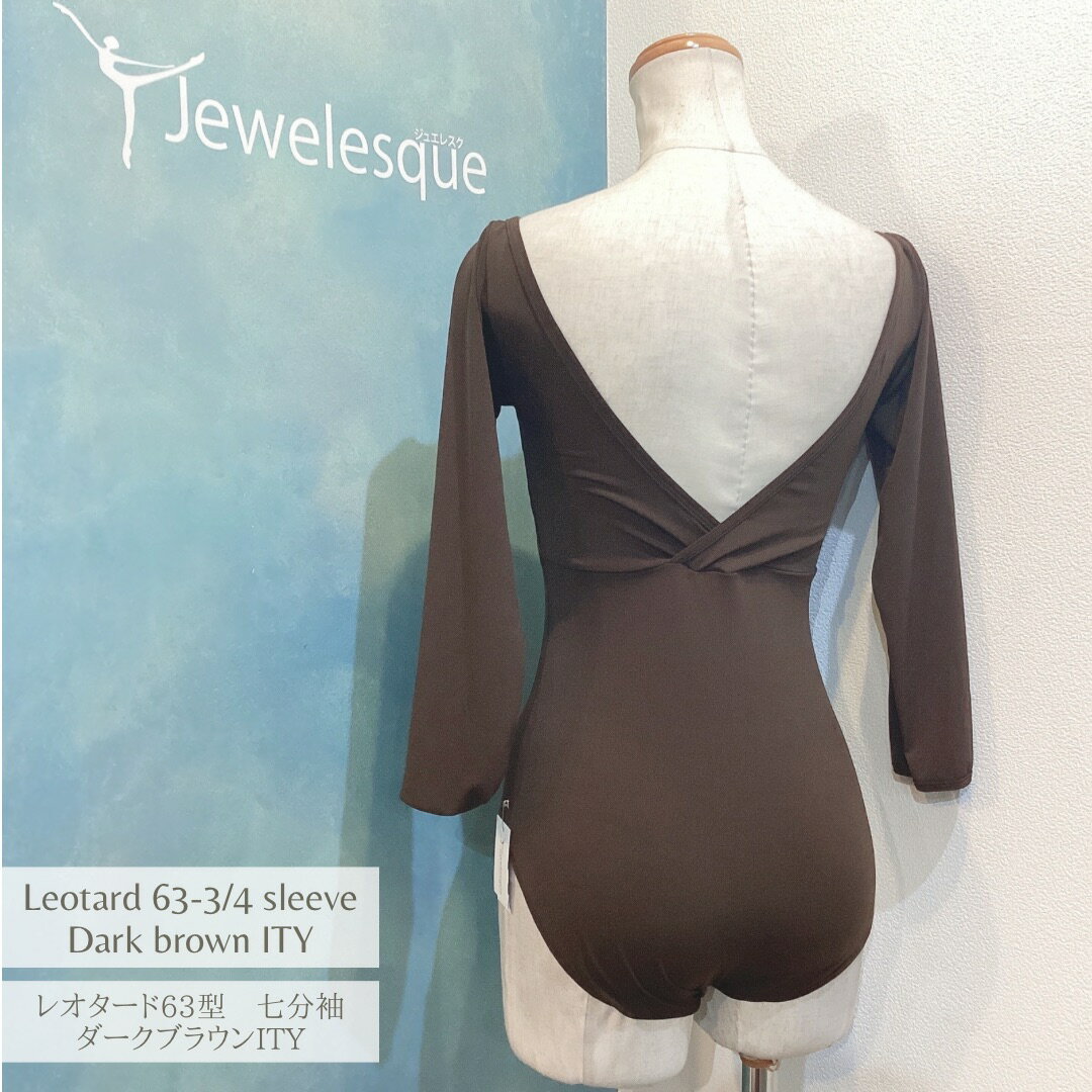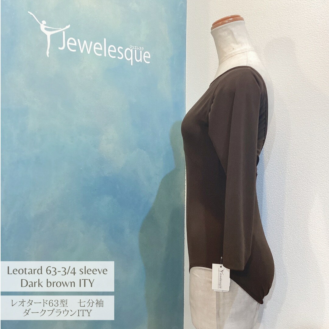 63型 七分袖レオタード ダークブラウンITY生地 バレエレオタード Jewelesqueオリジナル63-3qs-darkbrown