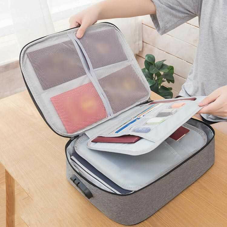 ダイヤルロック付きで大切な書類をしっかり保管♪A4サイズをすっぽり収めるサイズ感、ICカード、USB、パスポートなど収める大小異なる仕切りポケットがたくさん、出張や海外旅行に是非お勧めの大容量収納バッグ。持ち手付きで、持ち運び便利。さらに、スーツケースにも簡単に装着可能なので、移動する時もラクラク。重要な書類やパスポートなどを収納した時、持ち歩くのも安心のダイヤル式のロック機能搭載!シューズや下着、靴下したなどを収納するトラベルポーチとしても活用できます。水弾きの高撥水生地なので、急な雨や雪の日も安心。サイズ3層ロック付きサイズについての説明F 横幅約37x奥行約27x高さ約10.5cm素材オックスフォード色グレー ブルー ブラック備考サイズ詳細等の測り方はスタッフ間で統一、徹底はしておりますが、実寸は商品によって若干の誤差(1cm〜3cm )がある場合がございますので、予めご了承ください。 商品の色は、撮影時の光や、お客様のモニターの色具合などにより、実際の商品と異なる場合がございます。あらかじめ、ご了承ください。▼色味の強い製品によっては他の衣類などに色移りする場合もございますので、速やかに(脱水、乾燥等)するようにお願いいたします。▼▼生地の特性上、やや匂いが強く感じられるものもございます。数日のご使用や陰干しなどで気になる匂いはほとんど感じられなくなります。書類バッグ A4サイズ ダイヤルロック グレー ブルー ブラック