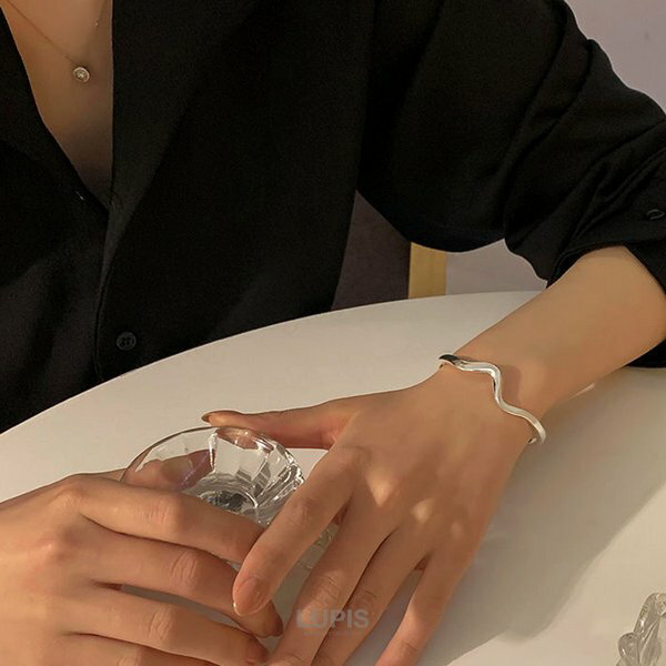 バングル ブレスレット ウェーブライン ニュアンス メタルライン シルバー シンプル おしゃれ 大人 高見江激安 安い プチプラ LUPIS ルピス