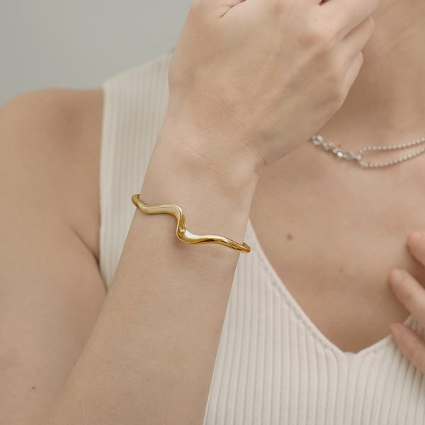 ブレスレット バングル 金属アレルギー対応 つけっぱなしOK レディース ステンレス サージカル 316L 錆びにくい 水に強い シンプル ウェーブ lupis ルピス 激安 安い