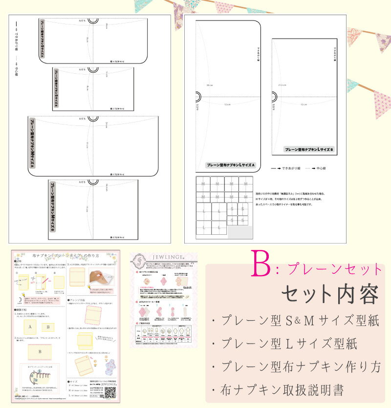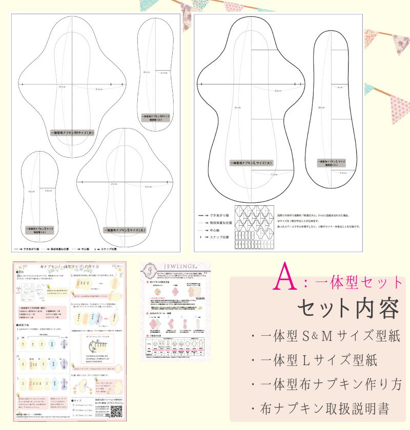 布ナプキン 型紙 [ジュランジェオリジナル布ナプキン型紙 JEWLINGE 日本製 ]一体型布ナプキン、プレーンが作れる 手づくり ハンドメイド パターン 作り方説明書 手作り 手芸 ジュランジェ
