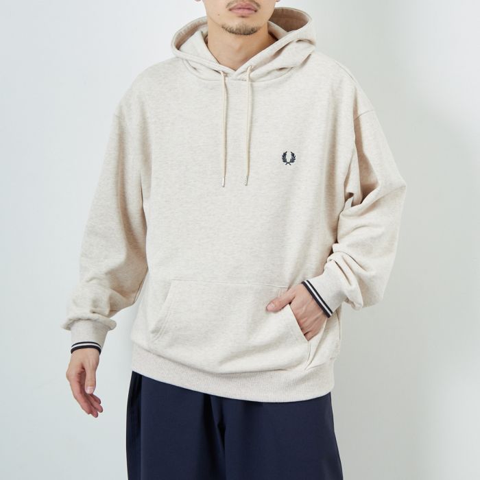SHOPPING GUIDE ※ご購入前に必ずご確認ください※ 当店では複数店舗で在庫を共有しており、システムで在庫調整を行っておりますがタイミングにより在庫にずれが生じることがあります。 人気商品など注文が集中してしまうと在庫数更新が間に合わず、ご注文頂いた商品が欠品となる場合もございます。 万が一品切れの場合は誠に申し訳ございませんが 何卒、ご容赦の程お願い申し上げます。 (弊店より必ずご連絡させていただきます。) 送料と商品のお届けについて 商品の返品、交換について お支払いについて 商品在庫について メーカー希望小売価格はメーカー商品タグに基づいて掲載していますFRED PERRYの定番フーディーに、他と差が付くディティールをプラスしたこだわりの別注パーカーが登場。フードにあしらったブランドロゴ刺繍がアクセントになる、JEANS FACTORYでしか出会えない特別なデザインです。胸元にもアイコニックなローレルマークのワンポイントロゴ刺繍を配して、ベーシックなルックスに仕上げています。光沢感のある上品な印象の裏毛スウェット生地を使用し、ロングシーズン着回せるアイテムに。ゆったりと着こなせるリラクシーなルーズフィットシルエットに、肩を落としたドロップショルダーデザインなので、窮屈感がなくノンストレスで着用いただけます。飽きの来ないシンプルなデザインで、幅広いテイストにマッチするアイテムです。 素材本体 綿 100% 裾リブ部分 綿 95% ポリウレタン 5% 袖口リブ部分 綿 66% ナイロン 17% ポリエステル 16% ポリウレタン 1%生産国日本 表記着丈身幅袖丈肩幅M65cm59cm56.5cm58cmL67cm62cm58cm60cmXL69cm65cm59.5cm64cm ※JEANS FACTORY Online Shop独自の方法により採寸しております。採寸方法はサイズガイドをご確認ください。