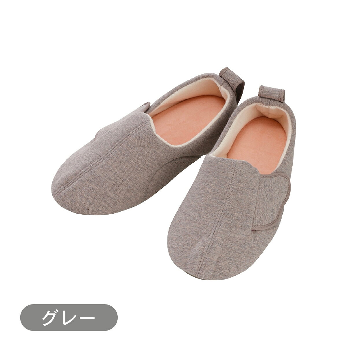 オススメポイント やわらかい中底クッションでやさしい履き心地。 水がしみこみにくく、すべり止め付きで安心な靴底 スリット入りで大きく開く履き口 マジックで足囲を調整 ●手洗い可能 ●抗菌・防臭加工(中底) 品番 2233 スリットベルト 両足 素材 表:綿100% 内:ポリエステル75%、綿25% 底材:合成皮革 重さ(片方) 約90g(Lサイズ) 足囲 3E〜7E相当 サイズ M (22.0〜23.0cm) L (23.5〜24.5cm) LL(25.0〜26.0cm) 製造元 徳武産業株式会社 広告文責 株式会社日本健康美容開発 検索用ワード 徳武産業 あゆみ ayumi 靴 介護シューズ リハビリ ルームシューズ スリッパ 男女共用 婦人 紳士 男性 女性 シニア 高齢者 室内用 施設用 自宅用 おしゃれ 転ばない 疲れない 敬老 母の日 父の日 ギフト 誕生日 紫 グレー