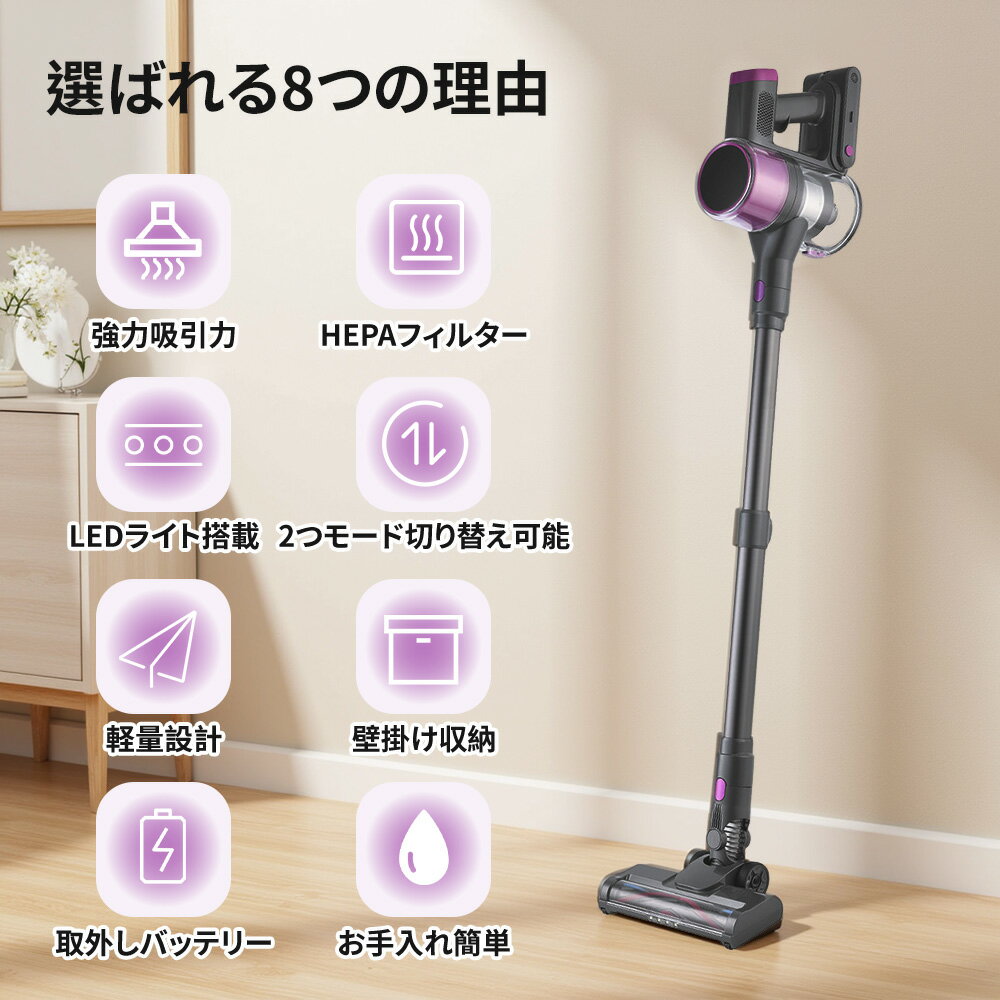 【10%ポイントバック!】掃除機 コードレス ハンディ 58000pa スタンド 自立式 自走式 グリーンLEDライト付き 伸縮パイプ サイクロン式 強力吸引 充電式 6IN1 ヘッドライト HEPAフィルター ハンディ掃除機 スティック 取外しバッテリー ハンディクリーナー