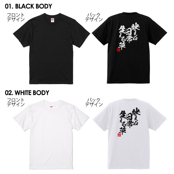 必ずご確認下さい。 【商品内容】 デザインTシャツ 【カラー】 ・ホワイト・ブラック 【商品詳細】 【サイズ展開】・S/M/L/LL【素材】綿100%【ボディ生産国】中国【印刷】日本 【注意事項】・各採寸箇所については、実寸(平置き)より約-2cm〜+2cm程度は誤差の許容範囲とさせて頂いております。 ・ページ内写真と実物では多少の色の違いが生じる事があります。 ・発送まで3〜5営業日いただいております。 ・注文確定後、自社印刷するため、ご注文後のキャンセルはお断りさせていただいております。 【メール便について】 ・代金引換の場合、メール便は選択できません。 別途、弊社規定送料+代引手数料となります。・メール便の配送中での商品破損の返品・交換はできません。 配送中の保障をご希望の方は宅配便での購入をお勧めします