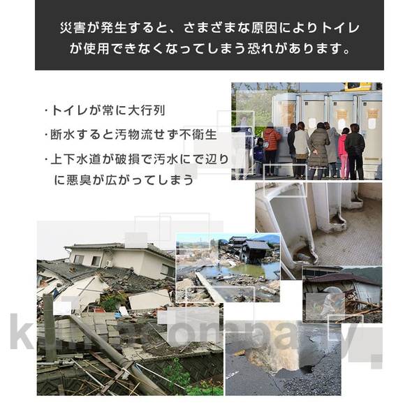 材質:PPサイズ:35.5×36.5×40CM収納サイズ:44×40×13.5CMカラー:全3色付属品:凝固剤、処理袋重量:約2.3KG耐荷重:約150kg■万が一に備えて用意しておけば安心■凝固剤?廃棄袋?収納袋が付いてくる■簡単組み立て■コンパクト収納■PP材質なので丸洗い可能■頑丈設計で安心して使える■サイドハンドル付きで持ち運び楽々■イス?ゴミ箱?収納箱としても使える○使用上の注意事項※改造/本来の目的以外/強い衝撃などはお控え下さい。※仕様は改善の為に予告なく変更する場合があります。※ディスプレイ画面等の環境上、写真と実際の商品の色とは多少違う場合がございます。※輸入商品により、軽い汚れ/ダメージ等がついている場合がございます。
