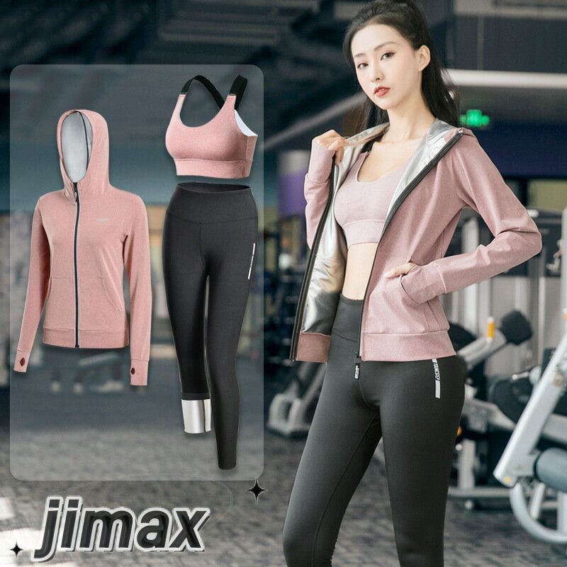忙しい現代人に必須のダイエット時短アイテム!レディースサウナスーツ上下セット! これで時間を効率的に使って発汗できます? パーカー、パンツ上下2点セットのオシャレなサウナスーツ!ダイエットや代謝UPに最適? ?このサウナスーツは、機能性、耐久性に拘わり、ダイエットの協力な手助けになるでしょう。 ?気になるおなか、二の腕、太もものシェイプアップをサポート。 ?強み:サウナスーツ特有の生地の擦れるシャカシャカ感はほぼ感じません。また洗濯機での洗濯可能です。 ?大量の汗を出したあとでも着脱しやすいこだわり設計。 ?トップスには滑らかに動くチャック、ボトムスには脱ぎ易いようマジックテープを配置。 ?シルバーコーティングによる防菌防臭加工済。 ?ストレッチ素材による伸縮性によりヨガなどの柔軟体操でも運動のし易さを実現。 【商品紹介】 2点セット内容 ■サウナスーツ ■サウナパンツ 2点セット(フードあり)内容 ■サウナスーツ(フードあり) ■サウナパンツ 3点セット内容 ■サウナスーツ ■スポーツブラ ■サウナパンツ