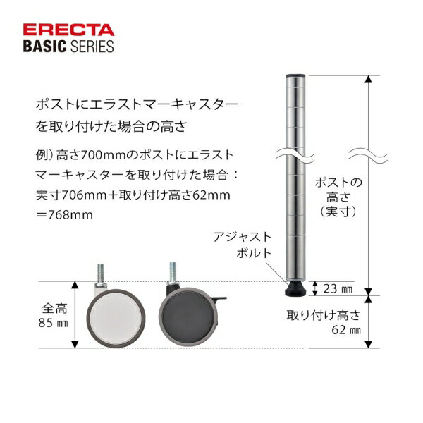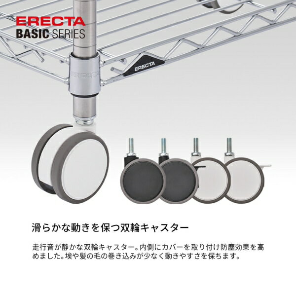 【返品種別A】□「返品種別」について詳しくはこちら□2023年01月 発売◆音も静かで床にやさしい双輪キャスター弾力性の高いエラストマーを双輪に採用◆床にキズがつきにくくスムースな移動ができます◆取り付けも簡単です◆移動用棚としてお使い頂く際に便利なキャスターストッパー付とストッパー無を2個ずつ対角にお使い頂くと通常固定棚として使用可能。■ 仕 様 ■商品サイズ(約):直径75mm・全高85mm・取り付け高さ89mm材質:本体/スチールナイロン、車輪/エラストマー・ABS、専用スパナ付き[BDR75EBKG]エレクター生活家電>スチールシェルフ>エレクタ ベーシックシリーズ>ポール関連部品