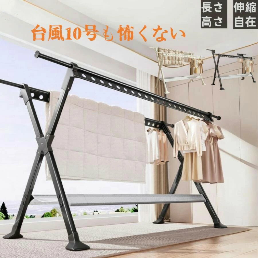 川口技研 室内用物干し竿セット(ブラック)標準サイズ QSC-23-BK ホスクリーン 竿の長さ(約):最小1.45〜最大2.34m [QSC23BK]