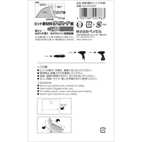 ベッセル 剛彩ビット 10本組 (両頭) +2×65mm GS10P2065F VESSEL
