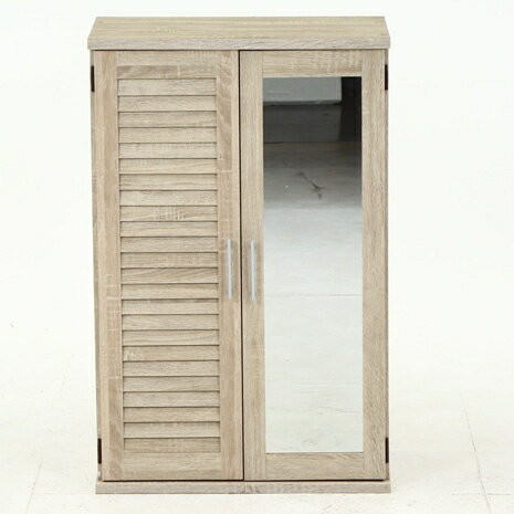 不二貿易 ルーバー&ミラー付きシューズボックス60幅(ホワイトオーク) 86191 [86191フジボウエキ]