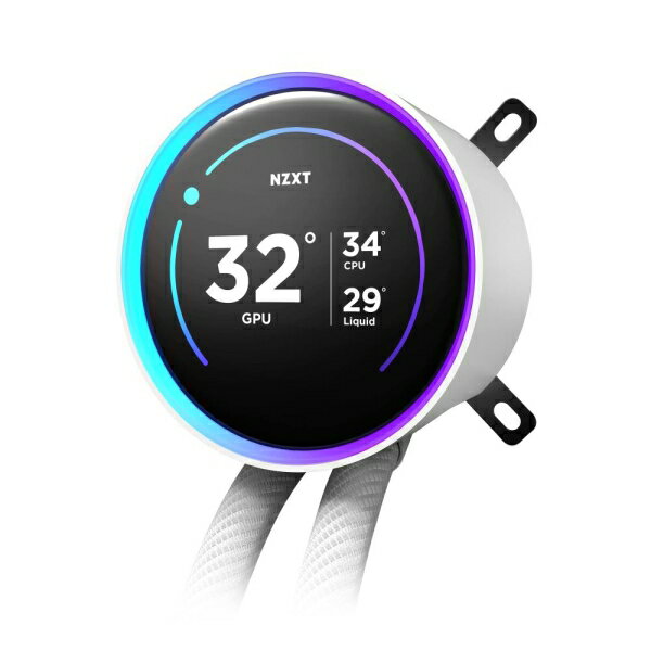 【返品種別B】□「返品種別」について詳しくはこちら□2024年10月 発売メーカー保証期間:6年【ご購入後のお問い合わせにつきまして】購入後の初期不良・お問い合わせにつきましては、タイムリーサポートにご連絡下さい。◆高性能ポンプ、大きな液晶、美しいファン新たにNZXTタービンポンプを採用し、Intelオープンベンチ法を使用したメーカー実施の熱抵抗テストに基づき、従来製品比較で約5〜10%の冷却性能向上を果たしました。円形液晶ディスプレイは2.72インチ(直径69mm)、解像度640x640px/60Hz表示可能なIPS液晶を採用。円の外周に美しく発光するリングを搭載しました。ラジエーター冷却ファンには複数のファンを一つのフレームに搭載した、F RGB COREファン(2024)を採用。配線や取り付けがシンプルで容易になり、整ったレイアウトを実現します。アプリCAMによる簡単な操作によりファンや液晶リングの発光色だけでなく、液晶表示を簡単にカスタマイズできます。冷却優先、静音優先を簡単に選べるだけでなく、環境にあわせて自由にカスタマイズできます。◆新しく簡単な F RGB CORE Fan(2024)を搭載継ぎ目のない筐体に複数のファンを搭載し、発光するファンブレードの円が際立つデザインです。側面にはライン上の導光体を搭載し、ファブレードの発光を映し出します。ファン1機に8灯のARGB LEDを搭載し、アプリCAMで自由な色やパターンをカスタマイズできます。また、複数のファンを1つの筐体にまとめたことにより、取り付けに使うネジの数を減らしました。更に、配線を最大でも2本(環境により1本)に低減したことで、組み立て時、メンテナンス時、拡張時の配線管理を著しく容易にしました。◆CAMで自由にカスタマイズNZXT製品の統合アプリ「CAM」(無料)により、冷却設定、液晶表示、ファンなどの発光を自由にコントロールできます。冷却は静音優先「サイレント」、冷却優先「パフォーマンス」から選んで設定できるだけでなく、任意に設定できる「カスタマイズ」を簡単な操作で行えます。ファンや液晶外周リングライトの発光色/発光速度/発光パターンを自由にカスタマイズできます。液晶に表示する内容を自由に選択できます。CPU、GPU、冷却液の温度などのシステム情報を選択し、組み合わせて表示できます。お好みのGIF動画や画像、お好きなYoutube、Spotifyに対応したオーディオビジュアライザーなどを簡単に選択して表示できます。◆簡単な取り付けと高い耐久性IntelソケットLGA1851、1700&1200、115Xおよび、AMDソケットAM5/AM4に対応するマウントブラケットが付属しています。水冷ヘッドにはブレイクアウトケーブル1本を接続するだけです。CPU接触面には、NZXTの高性能サーマルグリスを塗布済みです。電線被膜などに用いられる温度変化に強いCIIRゴム製チューブと、それを保護するPET樹脂編みスリーブにより、取り付けやメンテナンス時のダメージを低減し耐久性を高めています。特に水冷液を通すチューブは蒸発を防ぐ素材を採用した事で、長期運用性を高めています。【ご注意】※本製品はDOSV/AT互換規格に則ったPCパーツを組み合わせてご使用いただく事を前提に設計されておりますが、全ての同規格対応製品との互換性を保証するものではありません。※ご購入時の内容物以外の部品との組み合わせ時は、本製品に関するサポート以外は承れません。※製造工程や通常輸送過程で生ずる微細な傷やへこみ等に関しましては製品仕様となり、初期不良交換や修理の対象としては承れません。※万が一ご購入時に製品不良が確認できた場合、2週間以内にご購入店へお問い合わせください。ご事情がある場合はタイムリーサポートまでお寄せください。※万が一本製品の故障により生ずるダウンタイム(製品をご使用いただけない期間に起因する直接、間接の損失)の補償は承れません。【ダウンタイム補償の免責】※データに関するあらゆる補償は承れません。【データ補償の免責】■ 仕 様 ■対応ソケット【Intel】:LGA1851 / 1700 / 1200 / 115X対応ソケット【AMD】:AM5 / AM4ディスプレイサイズ:2.72インチディスプレイ解像度:640 x 640 pxディスプレイ輝度:690 cd/m2銅プレート:正方形 (1辺:93.5mm/高さ:65mm)ポンプ回転数:1200-2800±300RPMラジエーターサイズ:281 x 120 x 27 mmチューブ長:400 mm【付属ファンの仕様】モデル名:F240 RGB Core Fanサイズ:240 x 120 x 26 mm回転数:500-2400 ± 250 RPM風量(1基あたり):75.12 CFM静圧(1基あたり):3.3 mm H2Oノイズ(1基あたり):30.0 dBA軸:流体動圧軸受コネクタ:PWM 4ピン内容物:KRAKEN Elite RGB本体、F RGB CORE Fan(2024)、Breakoutケーブル、PWM分岐ケーブル、取付工具一式保証期間:6年間 ※ご購入店名、ご購入日の記載された領収書かレシート、それに準ずるご購入証明書や納品書が必須です。[RLKR24EW2]パソコン周辺>ボード・パーツ>CPUクーラー>水冷式