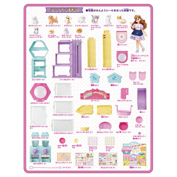 【返品種別B】□「返品種別」について詳しくはこちら□■新製品■2025年11月 発売※画像はイメージです。実際の商品とは異なる場合がございます。※人形は別売です。※同一と思われるお客様より大量のご注文をいただいた場合、ご注文をお取り消しとさせていただく場合がございます。【商品紹介】わんにゃんシェアハウスとペットシッターリカちゃんがセットになって登場! リカちゃんといろんなペットたちが楽しくくらすシェアハウスへようこそ♪"ギミック付きのげんかんはライトが光り、音声がいっぱい! チャイムボタンやインターフォンボタンで色々な来客ごっこ遊びやおうち遊びができます。大きな宅配BOXもあるのでお届け物をそこに入れてね! 玄関の開け閉めもスライドスイッチで自由自在。開閉時にステキな音も流れます♪すべり台のあるバルコニーにはエレベーターで行きましょう! 各階に着くごとに「チーン♪」と音が鳴ります。2階建てでお部屋もいっぱい! ダイニングルーム、バスルーム、ベッドルーム、ドレスルームがあり、電子レンジと食洗器の付いたキッチン、ダイニングテーブル、ソファー、ベッド、バスタブ、トイレなどの家具も一式付属。ステキなシャンデリアは1階とベッドルームの好きな位置に付け替えられ、ベッドルームにはカーテン付き! "【セット内容】わんにゃんシェアハウス(1)ペット(11)おやつガチャ(1)おやつ皿(大)(5)おやつ皿(小)(5)わんにゃんビスケット(15)わんにゃんクッキー(15)ねこ耳ソファー(1)なかよしソファー(1)リード(1)ダイニングシート(1)背景ボード(1)せんようシール(1)紙小物シート(1)人形(ドレス、イヤリング、下着着用)(1)靴下(1)クツ(1)【商品仕様】パッケージサイズ : W455×H255×D180(mm)対象年齢 : 3歳〜(C)TOMYおもちゃ>キャラクター・シリーズで探す>ら行>リカちゃん>ハウス