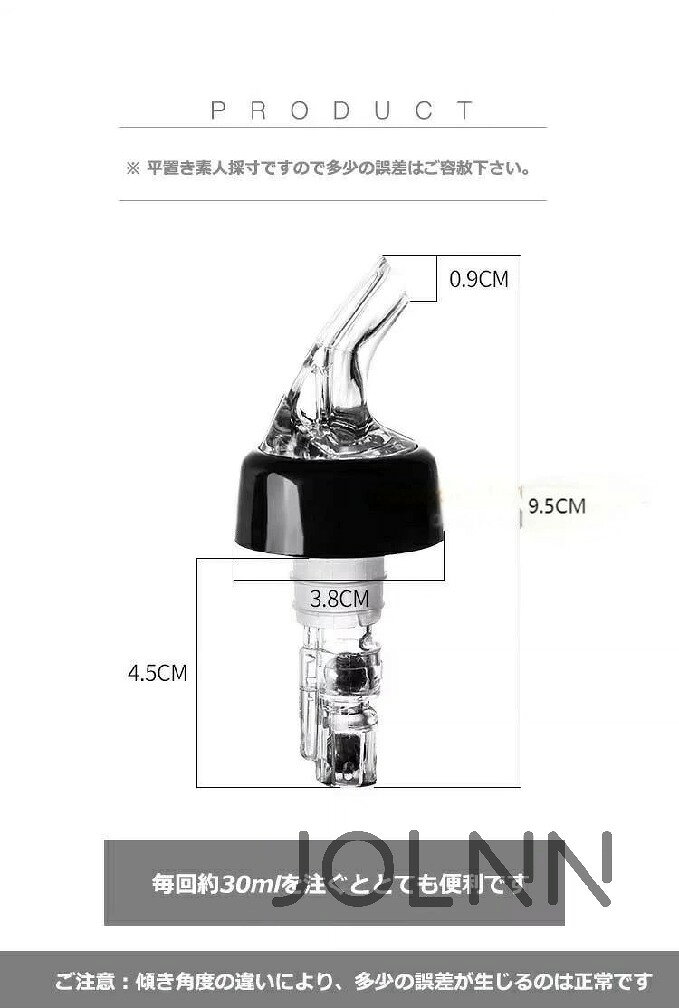 メーカー希望小売価格はメーカーサイトに基づいて掲載しています【商品内容】定量ポーラー×4個/5個/6個【素材】PC、シリコン、ステンレススチール30ml定量ポーラー4個/5個/6個セットです、つけ方も差し込むだけで簡単に使えます。ボトル結合部にはシリコン素材を採用していますので、ほとんどのボトルに適用しています。注ぐ際に液だれなく漏れないポアラーの役割を果たしながら、30mlを計測してくれるポアラーです。カクテルメイクでワイン、ウイスキー、ウォッカやテキーラなどを注ぐ際に便利なアイテムとなっています。注意事項:平置き素人採寸ですので多少の誤差はご容赦下さい。モニタ環境によって、商品の色合いが多少違う場合があります。