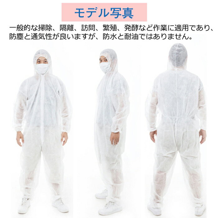 ★大特価15%OFFクーポン付き★10枚~100枚選択可能 防護服 保護服 使い捨て 作業服 不織布 セット 衛生 防塵 食品加工 ウィルス対策 帽子付き ワークウエア つなぎ服 大きいサイズ 大量購入可