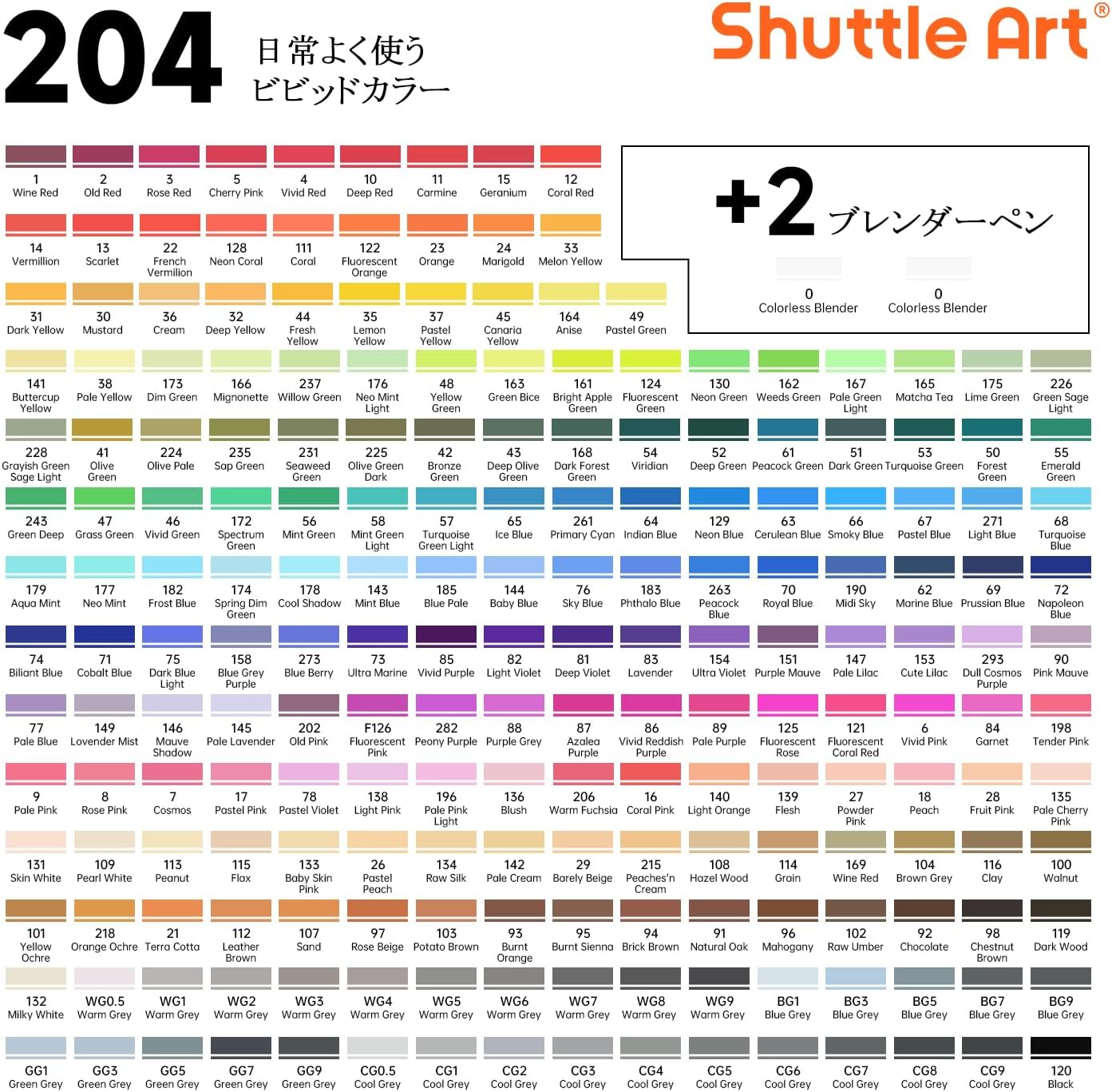 ブランドShuttle Artセット内容イラストマーカー×204色 ブレンダーペン×1本 スケッチブック×1冊 収納ケースサイズ30.3 x 21.11 x 17.09cm重量4.20kg注意事項・当店の商品は全て国内から配送されます。 ・国内配送の商品は国内でのお買い物と同じく消費税が発生いたします。関税はかかりません。 ・当商品はアマゾン倉庫(無地箱を使用)などの委託倉庫から発送させて頂いています。ご了承ください。 *色がある場合、モニターの発色の具合によって実際のものと色が異なる場合があります。【新入荷 送料無料】イラストマーカー 204色 マーカーペンセット 油性 ブレンダーペン スケッチブック付き 太細両端 防水速乾 色褪せしにくい キャリングケース付き 手帳 塗り絵 デザイン コミック 漫画 スケッチ 落書き お絵描きセット 画材 大人 子供 プレゼント ☆Shuttle Art☆204色油性マーカーペン☆大人の塗り絵・イラストに最適☆ブレンダーペン付き☆ 🎨205本マーカーペン イラストマーカー204色とブレンダーペン1本付きで、合計205本セットです。日常使う色がすべて含まれ、豊富なカラーバリエーションを持つイラストマーカーセットです。べレンダーペン付きなので、色混ぜやぼかしなどができ、色の表現の幅がよりよく広がります。マーカーペン専用のスケッチブック1冊がギフト付き、他の道具なくても直接お絵描きことができます。カラーチャートも一枚付属し、必要な色がお手軽にお探しいただけます。布製キャリング―ケースが丈夫で、収納が便利です。 🎨プロに相応しい 太細両端で、お絵描きことが存分に楽しめる画材セットです。1mmと7mmのペン先は手の持つ角度と力の加減によって、線の太さが自由に調整できます。滑らかな書き味とキレイな発色を持ち合わせ、重ね塗りや混色などができ、専門家やマンガ描きが好きな人にプレゼントしても最適です。軸が持ちやすく手にフィットする平べったい形なので、子供から大人まで誰でも馴染めます一方、滑らかな表面でのころがりも防げます。 🎨耐用性&安全性 油性インクを使用しているため、塗ったところがすぐに乾き、手を汚すことはめったにないです。防水性と固着性に強く、色褪せしにくいです。1本あたりのインク量が大量で長く使えます。安全な材料で作られ、いやなにおいもしなく、ASTM D-4236 安全規格(CE認証)がすでに取得し、体にも環境にも優しく、大人はもちろん、子供も安心して楽しめます。 🎨様々な用途 手帳・塗り絵・デザイン・コミック・漫画・スケッチ・落書き・建築・クラフトなど、様々な用途を持つお絵描きセットです。◎ご注意:ご使用中にペン先は長時間紙に留まらないでください。マーカーパッド以外に紙質によっては裏写りの可能性がありますので、試し書きや裏写し防止シートを使うことなどしてください。ご使用後はキャップをしっかりしめて横置きに保管するようお勧めします。 2