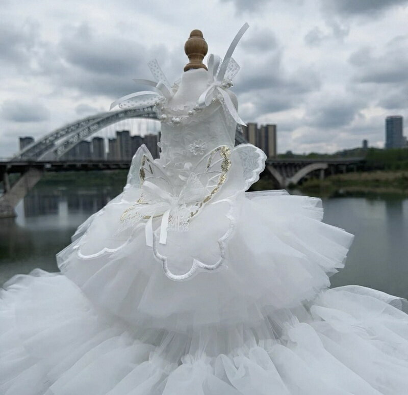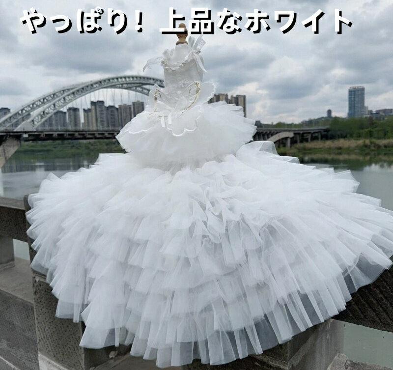 【オーダーメイドロングドレス】犬猫服ドッグウェア ウェディングドレス ショート&ロング 2Wayタイプ 取外す可能 超ゴージャスドレス 職人手作り 豪華 上品 撮影会可愛い 華やか お姫様 プリンセス 結婚式 お祝い