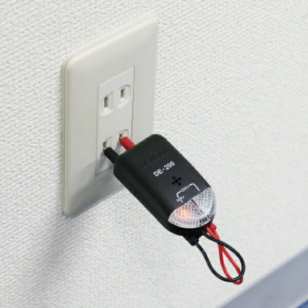 Jefcom・ジェフコム/DENSAN・デンサン サウンドエレチェッカー DE-200一人で、ブレーカーとコンセントの接続を確認できる!●光と音で判定する電圧チェッカー●100V・200V判定機能付●コンセント等の検電テストに●テストリードは裏面に収納できる仕様使用電圧AC250V以下使用周波数50Hz〜60HZ絶縁抵抗10MΩ以上(DC500V、テストリードとケース間)耐電圧2000V 1分間(テストリードとケース間)動作温度範囲0℃〜40℃(RH-80%以下)サイズW34×H65×D28mm※当店に在庫のない場合はお取り寄せのため納期にお時間がかかる場合があります。