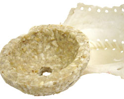 外側の薄い革の下には砕いた革を圧縮したボーンも入っていますので、ワンちゃんによってはすぐにボールを壊してしまい、食べ過ぎてしまう恐れがあります。 また、食べ過ぎによる嘔吐などを引き起こす可能性もありますので、必ず、飼い主様の目が届く範囲でお与えください。 正規品 ボールの中には、小さなチューイングボーン(ビーフフレーバー)が入っています。 転がすと、小さな丸い穴から中のボーンがコロコロっと響くため、興味をそそり、長時間飽きることなく遊ぶことができます。 ボールが割れるなどして、中の小さなチューイングボーンが外に出てしまった場合、音は聞こえなくなります。 チューイングシリーズ ラインアップ 【数量限定】2倍増量チューイングスティック 20本 チューイングスティック 10本入/40g チューイングボーン Sサイズ/5本入 チューイングボーン Mサイズ/5本入 チューイングボーン Lサイズ/1本入 ベースボールボーン/1個入 Natural Balance / CHEWING BONES サイズ 直径:8cm程度 原材料/栄養成分 牛皮 カロリー 346kcal/100g 原産国 アメリカ合衆国 生後6ヶ月以上のワンちゃんにおすすめします。 原料がオールナチュラルなために収穫の時期や生産地の差によって色や臭いが若干異なる場合がございますが、商品成分には全く問題はありませんので予めご了承ください。【無くなり次第終了!】2倍増量チューイングスティック発売中♪ 無添加デンタルガム!天然の良質な牛肉皮ボーン 【全犬種対応/子犬(生後6ヶ月以上)〜老犬】 チューイングボーンシリーズのベースボールボーンは、良質のたんぱく質が含まれ、脂質・カロリーが低く、ビタミン・ミネラルも豊富に含まれた、球状のトリーツです。ボールの中に、小さなチューイングボーンが入っており、コロコロと転がる音がして楽しめます。 おやつとしてのほか、よく噛むことで、歯垢・歯石の除去(歯磨き効果)、虫歯の予防、あごや歯茎のマッサージ効果があります。また、ガムタイプはよく噛んで食べることで、唾液の循環が活発になり、健康な胃腸の働きをサポートします。 さらに、クッキーやビスケットなどのおやつとは違って、与える量が少なくてすむので、ダイエット中にもおすすめです。ストレス軽減にも役立ちます。 ※以前「ナチュラルバランス」として販売していたもので、中身はまったく同じものとなります。 天然・無添加の良質な牛肉皮のオールナチュラル製品 アメリカのホームサム肉条約に基づき「アメリカ連邦・州」の規定調査に合格したオールナチュラル製品で、天然の良質な牛肉皮で製造され、化学薬品などの添加物を一切使用していません。 外側の薄い革の下には砕いた革を圧縮したボーンも入っていますので、ワンちゃんによってはすぐにボールを壊してしまい、食べ過ぎてしまう恐れがあります。 食べ過ぎによる嘔吐などを引き起こす可能性もありますので、留守中には与えないでください。 必ず、飼い主様の目が届く範囲でお与えくださいますようお願いいたします。 【表面の黒い部分や色ムラにつきまして】 チューイングボーンシリーズにて、表面に黒い汚れのようなものが見られる場合がございます。これは、「製造時に出来た”尖ったささくれ部分”を、愛犬の安全のため、機械にて削り取る際に起こった摩擦による変色」となり、安全性に問題はございません。 また、本製品は天然の牛皮からできた安心・安全のナチュラル製品で、化学薬品などの添加物は一切使用しておりません。そのため、上記以外にも、色ムラなどが見られることがございますが、製品の特性をご理解いただけますようお願い申し上げます。 ↑色ムラの差は上記画像のように出ることがございます。