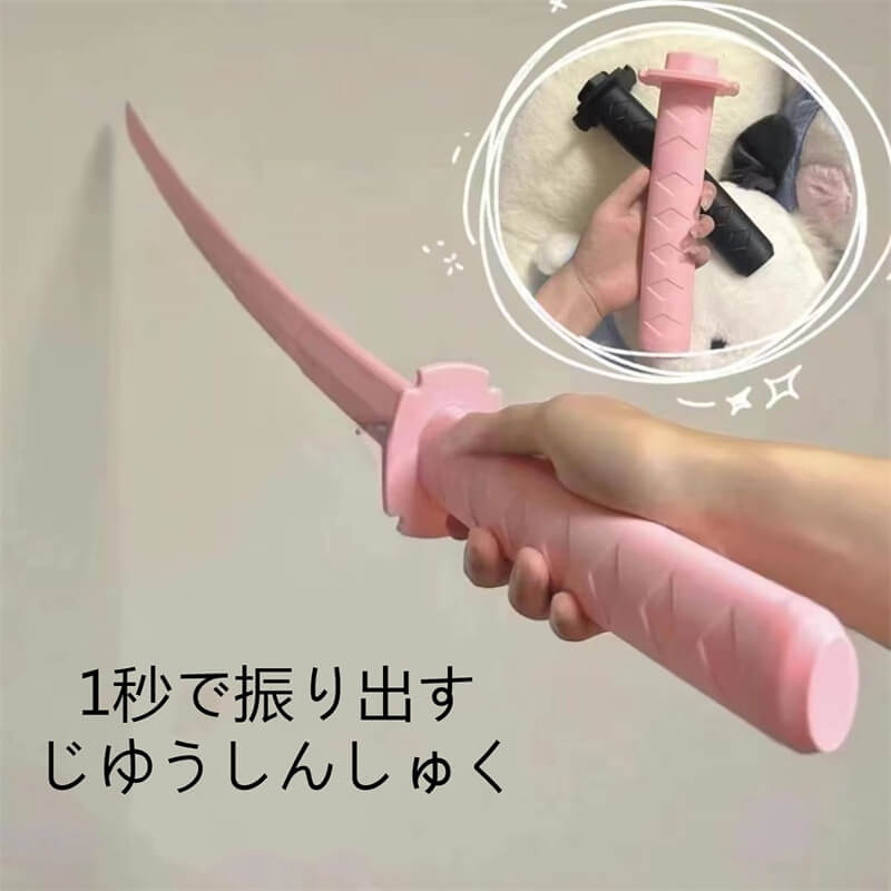 3Dは重力の引き込み式サムライのおもちゃ-伸縮自在の刀-ナイフ おもちゃ-伸縮式ナイフ-重力伸縮式-おもちゃの剣-創造的な減圧ののおもちゃを印刷した-重力伸縮式剣プラスチックシミュレーション コスプレやハロウィーンに最適ブラック ピンク