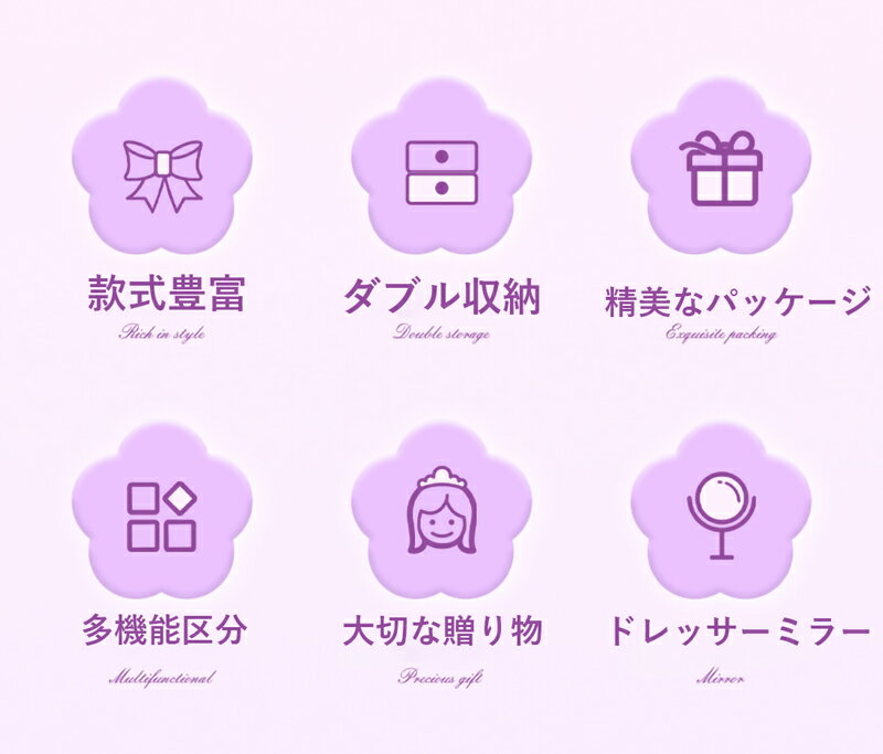 商品説明商品情報【商品セット内容】収納ボックス*1個+ヘアアクセサリー 30点セット。【カラー】パープル、イェロー、ピンク。【おすすめポイント】ヘアクリップやヘアピン、ネックレスペンダント、指輪などのアクセサリーをまとめて収納できる子供用のアクセサリーボックスです。散らかっているジュエリー小物をまとめて収納、ネックレスリングイヤリングピアスブレスレット腕時計ヘアアクセなどの各種類のアクセサリーをキレイに分けて収納できます。とってもキュートな子供用のアクセサリー30点セットです。入学式や卒業式など、お子様の特別な日にピッタリの可愛いヘアアクセサリー。カラフル、デザイン豊富左右どちらにも付けられるベビーとヘアクリップです。お誕生日、クリスマスや入園卒園入学卒業のプレゼントにお勧めします!女のお子様に大人気!女の子、子供、幼児、10代にも適合します。記念日やお誕生日、入園式 、卒園式、子供の日、七五三、初節句などの祝い事、ベビーフォトなどの記念写真撮影、お宮参り、お食い初め、セレモニードレスの小物として、ハロウィンの仮装パーティーにもおすすめです。保証期間90日間保証ご使用中においてのお客様の過失による故障、破損、改造等はサポート保証の対象外となります。注意事項運送事故により箱が潰れる可能性がございます。お問い合わせとメールを承りますので、質問や苦情を相談して有効に解決しましょう。勝手に悪いレビューをしないでお願い致します。モニターの違いにより、実際の商品の色が画像と異なる場合があります。手動測定とは異なるため、わずかな寸法の違いを許容してください。商品説明商品情報【商品セット内容】収納ボックス*1個+ヘアアクセサリー 30点セット。【カラー】パープル、イェロー、ピンク。【おすすめポイント】ヘアクリップやヘアピン、ネックレスペンダント、指輪などのアクセサリーをまとめて収納できる子供用のアクセサリーボックスです。散らかっているジュエリー小物をまとめて収納、ネックレスリングイヤリングピアスブレスレット腕時計ヘアアクセなどの各種類のアクセサリーをキレイに分けて収納できます。とってもキュートな子供用のアクセサリー30点セットです。入学式や卒業式など、お子様の特別な日にピッタリの可愛いヘアアクセサリー。カラフル、デザイン豊富左右どちらにも付けられるベビーとヘアクリップです。お誕生日、クリスマスや入園卒園入学卒業のプレゼントにお勧めします!女のお子様に大人気!女の子、子供、幼児、10代にも適合します。記念日やお誕生日、入園式 、卒園式、子供の日、七五三、初節句などの祝い事、ベビーフォトなどの記念写真撮影、お宮参り、お食い初め、セレモニードレスの小物として、ハロウィンの仮装パーティーにもおすすめです。保証期間90日間保証ご使用中においてのお客様の過失による故障、破損、改造等はサポート保証の対象外となります。注意事項運送事故により箱が潰れる可能性がございます。お問い合わせとメールを承りますので、質問や苦情を相談して有効に解決しましょう。勝手に悪いレビューをしないでお願い致します。モニターの違いにより、実際の商品の色が画像と異なる場合があります。手動測定とは異なるため、わずかな寸法の違いを許容してください。