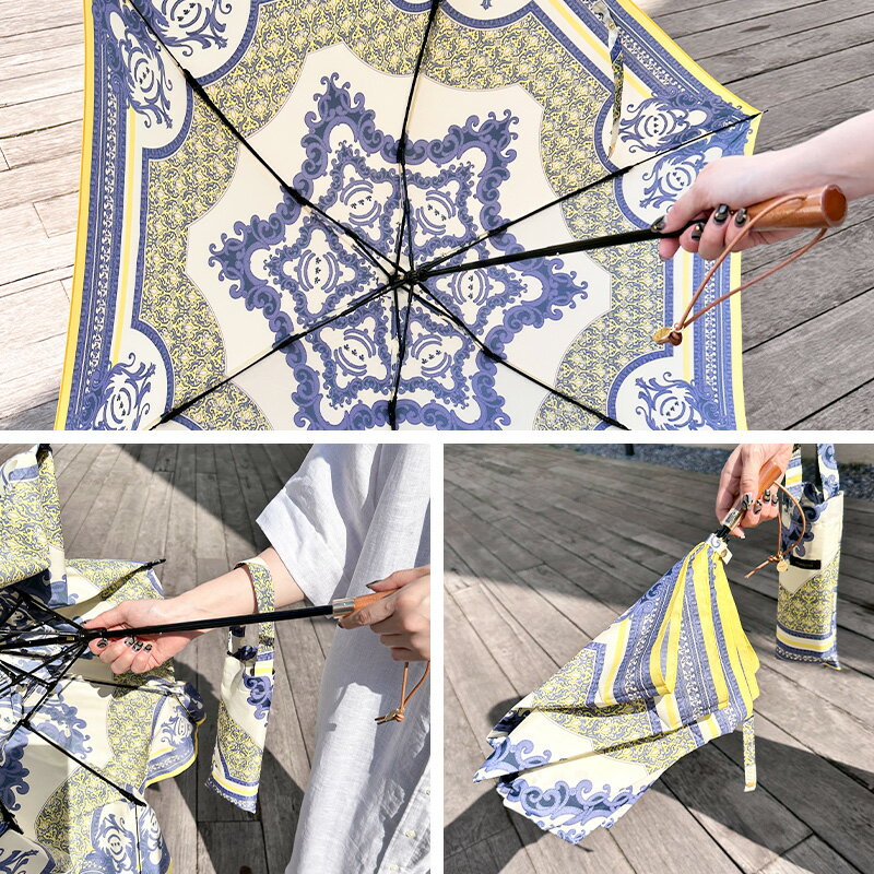 傘 マニプリ 折りたたみ 晴雨兼用 スカーフ柄 プリント manipuri | 人気 秋雨 梅雨 雨 晴れ パラソル UV加工 日本製 丈夫 安定感 柄 お洒落 おしゃれ 個性的 上品 雰囲気 バイヤーおすすめ インスタ SNS 【正規品】