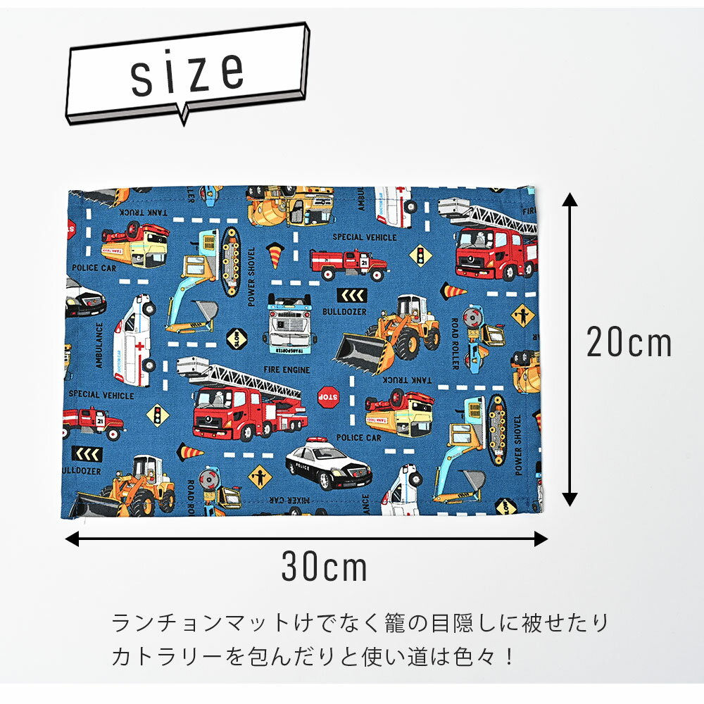 fabrizm キッズランチョンマット 30×20cm はたらくくるま 日本製ランチョンマット 幼稚園指定サイズ ティーマット 子供用 吸水 北欧 布