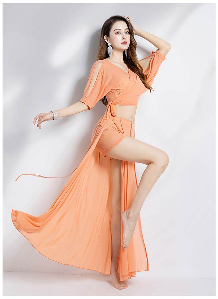 ベリーダンス 衣装 セット ベリーダンス レッスン着 練習着 衣装 セットアップ シースルー トップス スリット入り スカート 2点セット キラキラ フリンジ ダンス 衣装 ステージ衣装 社交ダンス レッスンウェア レディース 全4色