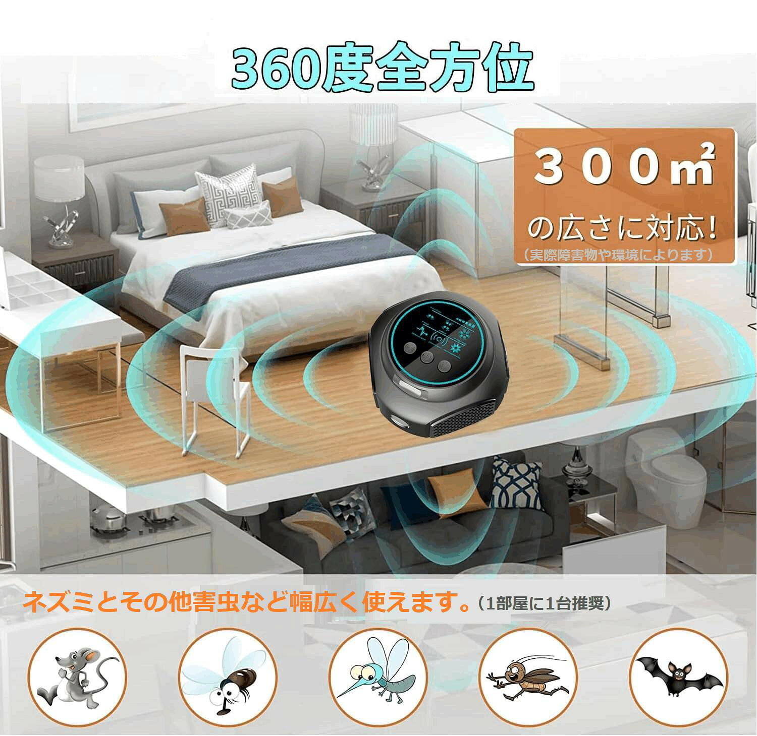 超音波ネズミ駆除器 360度 最新版 静音モード搭載 広範囲 連続稼働 省エネ 電池不要 非電池式 usb式 type-c ネズミ撃退 ねずみ忌避 害虫 電動虫除け ネズミ退治 非殺傷 子どもやペットに安心