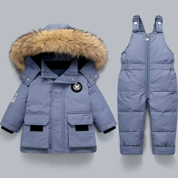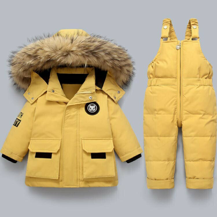 スキーウェア 上下セット キッズ ベビー ダウンコート サロペット パンツ 2点セット ダウン90% ジャンプスーツ カバーオール スノーウエア 子供服 フード付き ファー付き 男の子 女の子 子供服 アウター 秋冬 防風 防寒着 防風 軽量 お出かけ 通学 80 90 100 110cm