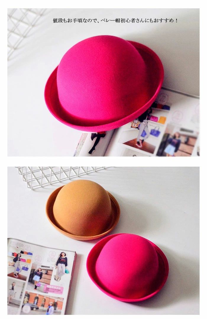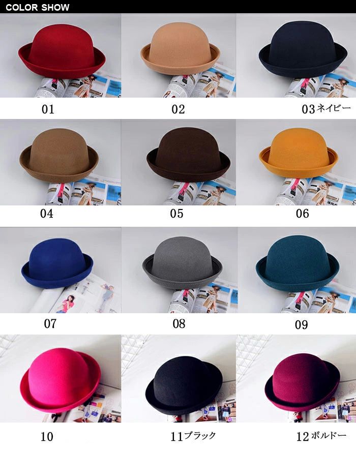 小つ ボーラー 秋冬 レディース 帽子 フェルトハット ボーラーハット キャップ 帽子 ベレー帽 フェルト 丸み レディース 中折れ
