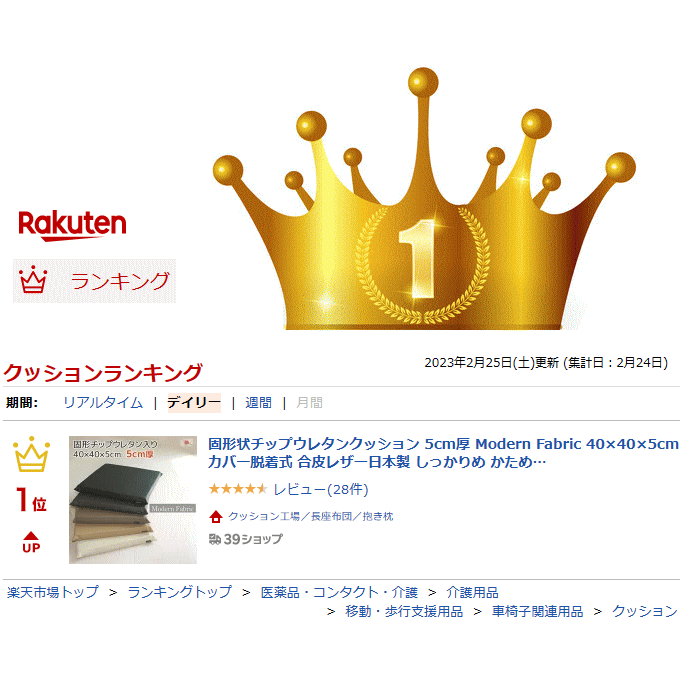 カバー・中材別々の購入より割安♪●カバーサイズ 45×45cm (中身を入れる前のサイズ)●製品サイズ 40×40×5(厚さ)cm●生地素材 ポリウレタン100%(基布:ポリエステル65% 綿35%)●中材 ポリウレタン 100%●重量 750g●生産国 日本製こちらは45×45cmサイズのカバーに、粉砕したチップウレタンを固めた状態の中材を入れた製品になります。厚みは5cmですが、風合いは”硬め”なので、座っても底付き感は”全く”ございません。フローリング(床)などの硬いことろに使用するにはこちらの厚さがかなりのおすすめです。お手頃価格にて、業務用(飲食店様)にもおすすめです。※実際の商品の色にできるだけ近づけるよう、撮影を行っておりますが、ご使用のモニター,あるいは実際の光環境により多少異なる場合がございます。(比較的明るめの撮影環境でございます)あらかじめご了承くださいませ。※またナチュラルアイボリーカラーに関しては、中材の色によっては多少透ける場合がございます。あらかじめご了承ください。★ポリエステルわた 約8cm厚シートタイプ ★ポリエステルわた 最大約20cm厚背当タイプ ★低反発チップウレタン 最大約20cm厚背当タイプ ★硬め 固形チップウレタン3cm厚 ★45×45cmカバー単品販売フェイクレザー 国産 業務用 カークッション 車椅子クッション 介護クッション ソファクッション シートクッション アウトレット SALE シンプル ナチュラル 敬老の日 父の日 母の日 プレゼント 贈り物 ギフト お歳暮 お中元 カーアクセサリー 角用 中身 中材 ↑比較的明るい環境下にて撮影しております。 大人の雰囲気をかもし出す、合皮レザー 「modern fabric」 モダン ファブリック トータルシリーズ全てにワンポイントのオリジナルタグをつけています。 (1)わた入れシートタイプはコチラから♪ (2)わた入れ背当てタイプはコチラから♪ (3)低反発チップ入れ背当てタイプはコチラから♪ (4)固形状チップウレタン【42×42×3cm】はコチラ♪ (5)固形状チップウレタン【40×40×5cm】 はコチラ♪ カバーのみの販売もございます。コチラからどうぞ♪ その用途は実に様々、多岐にわたります! 何もクッションだからと言って、 お部屋の中だけで使うと初めから決めつける 必要は全くございませんよっ! 右写真の様にお車にだってご覧の通り、 中材は(4)の固形チップウレタン3cm厚でバッチリ♪ ”社会に貢献するクッション♪” ←ご覧の様に、実は車椅子にも適した サイズですので、『介護クッション』としてもきっと活躍してくれそうですね♪ 合皮レザー素材ですので、失禁等もしもの時でも汚れる心配はありません もっても心強い味方なのです。 ←こちらはチェアーの上にちょこっと乗せてクッション性をUP! 長時間座り続けて、頑張ってお仕事している貴方の疲れの一部を きっときっと軽減させてくれる事でしょう?。 ※ご存じですか?⇒カバー&中材のセットで(別々購入より)さらに割安なのですっ♪