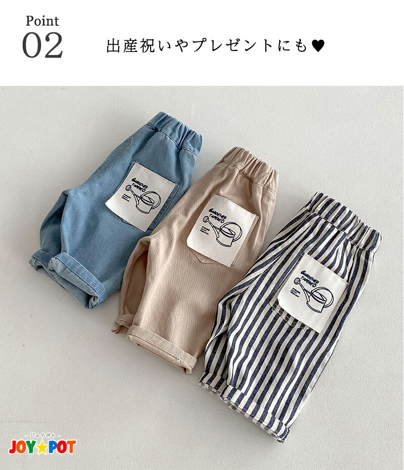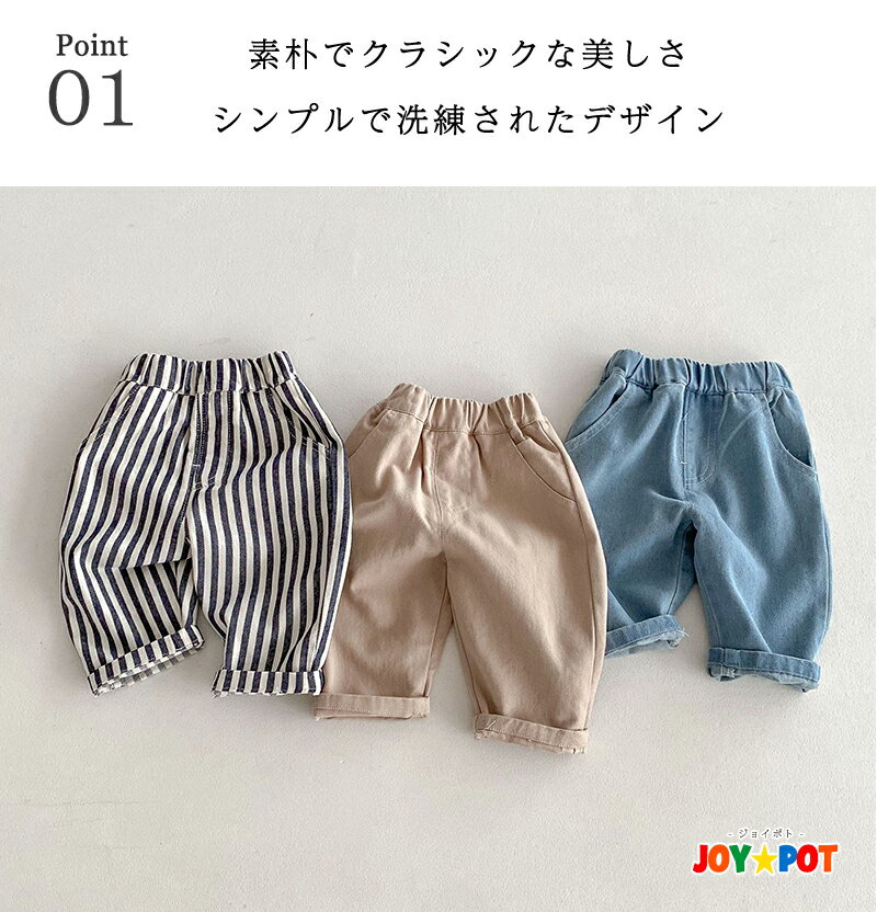 キッズ 服 安い/子供服 安い/子供服 おしゃれ/子供服 通販 安い/可愛い/ リンクコーデ/娘/プレゼント/ジュニア/子ども服/こども/人気/ペアルック/大人っぽい/カジュアル/ナチュラル/出産祝い/内祝い/ボトムス/ズボン/コーデ/コーディネート 材質:コットン、ポリエステル カラー:カーキ、ストライプ、ブルー サイズ(cm): 73:ズボン丈39、ヒップ28、ウエスト18 80:ズボン丈43、ヒップ29、ウエスト18 90:ズボン丈47、ヒップ30、ウエスト19 100:ズボン丈51、ヒップ31、ウエスト19 110:ズボン丈55、ヒップ33、ウエスト20 120:ズボン丈60、ヒップ35、ウエスト21