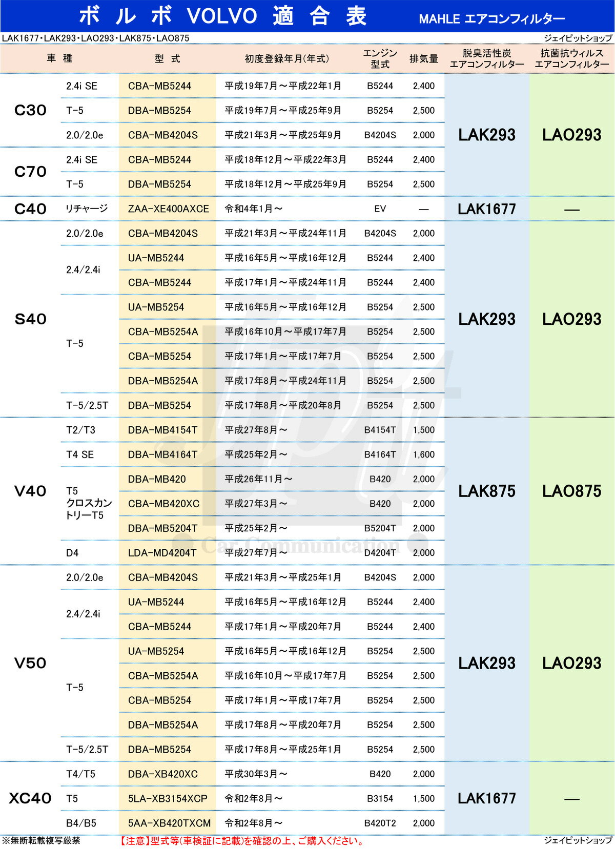 【2点で\300offクーポンあり】ボルボ エアコンフィルター 脱臭 花粉 V40 T2 T3 T4 T5 クロスカントリーT5 D4 ( DBA-MB4154T DBA-MB4164T DBA-MB420 CBA-MB420XC DBA-MB5204T LDA-MD4204T ) MAHLE マーレ LAK875 活性炭 PM2.5除去 純正フィルターメーカー製